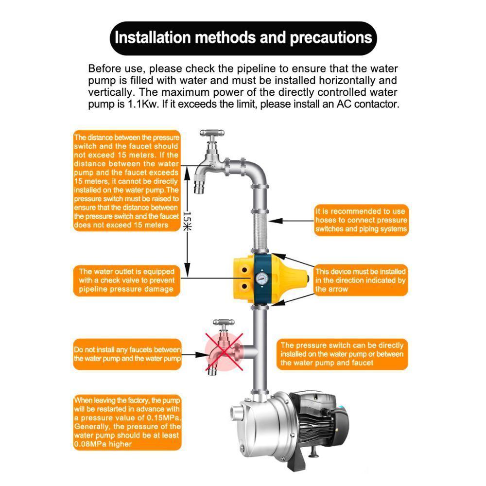 1100W 220V Automatic Pump Control Switch Water Booster & Self-Priming Jet Pump Controller Auto On/Of