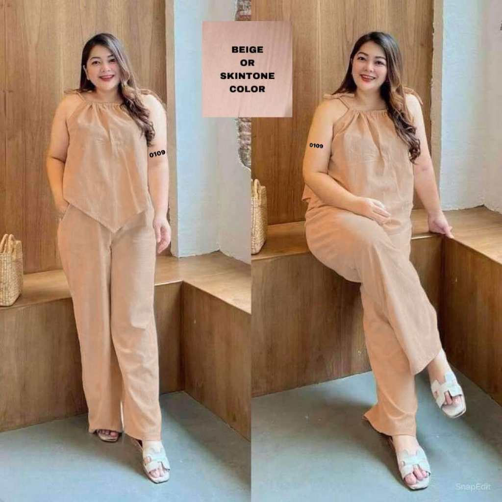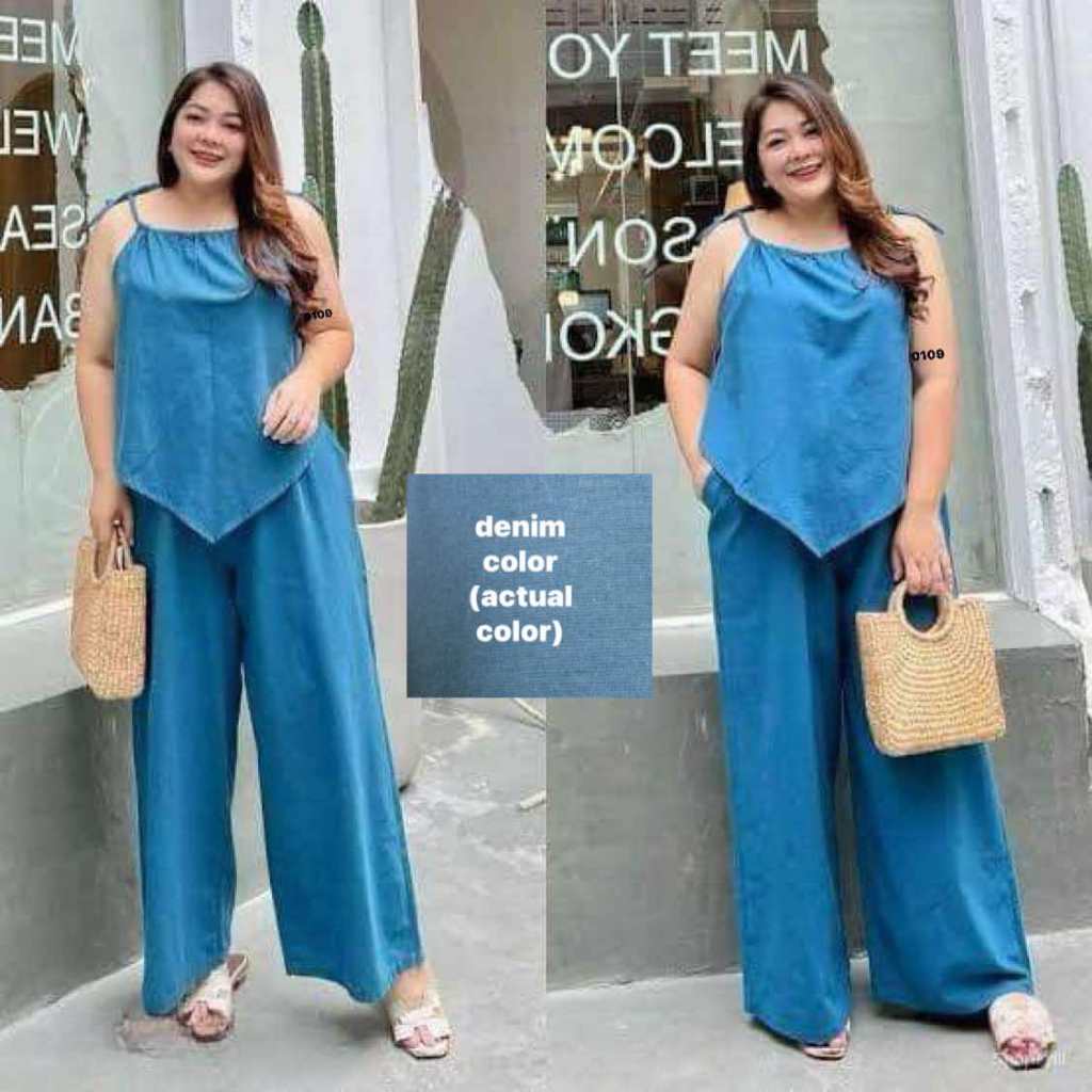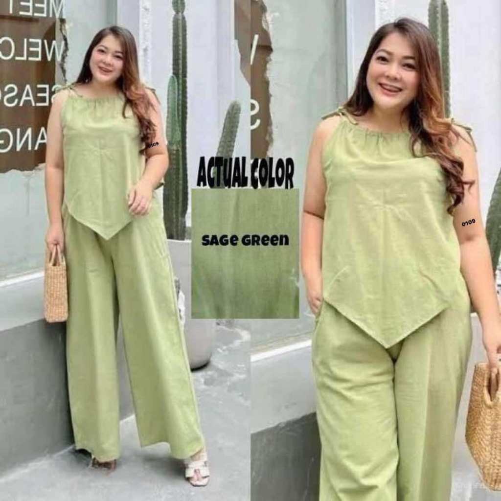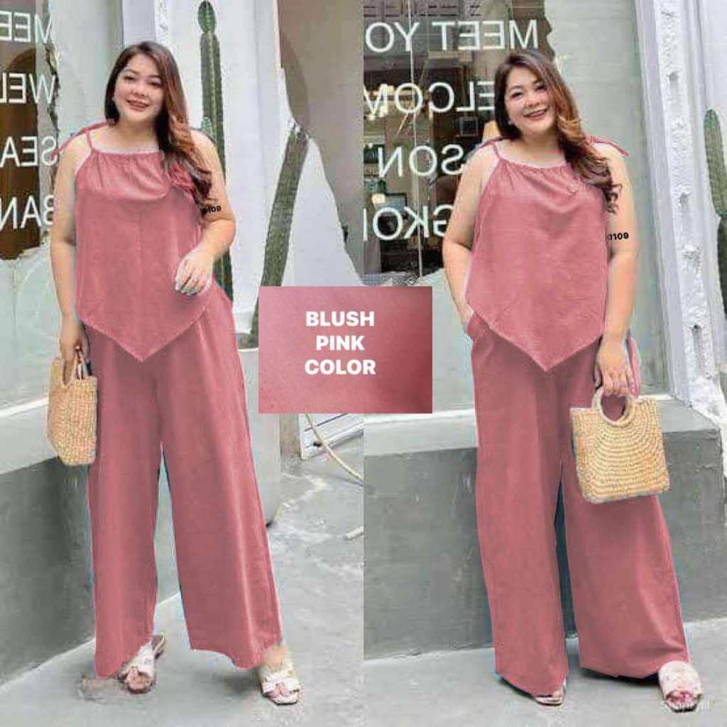 PLUS SIZE GWEN COORDINATES TRIANGLE BOW TIE TOP PAIR W/ LONG TROUSERS/PANTS WITH SIDE POCKETS
