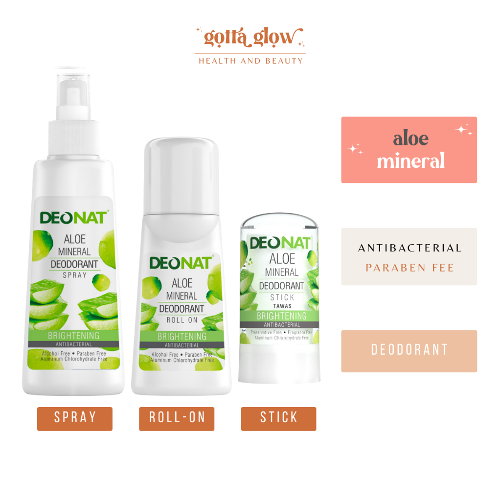 Deonat Natural Aloe Papaya Mineral Deodorant Spray / Stick Tawas / Roll on
