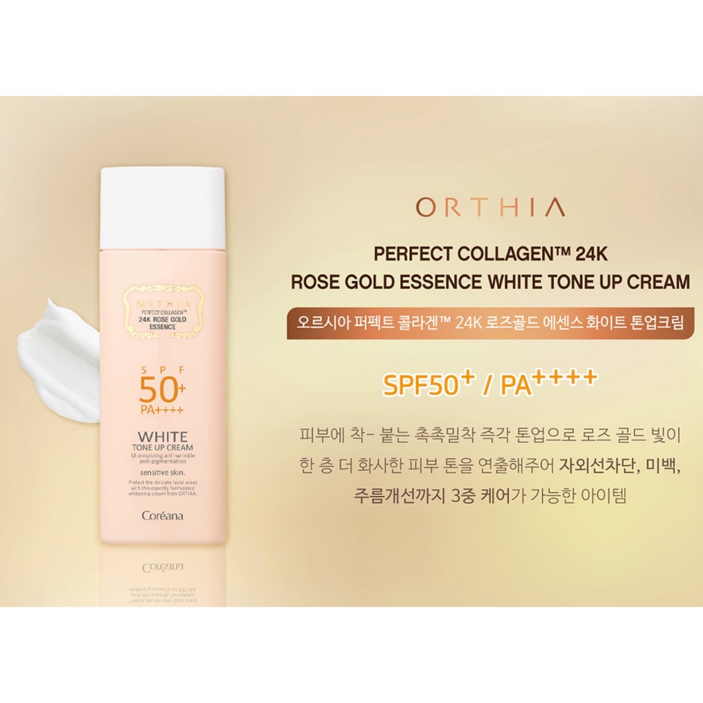 Coreana ORTHIA Perfect Collagen TM 24K Rose Gold Essence White Tone Up Cream SPF50+PA++++ 50ml
