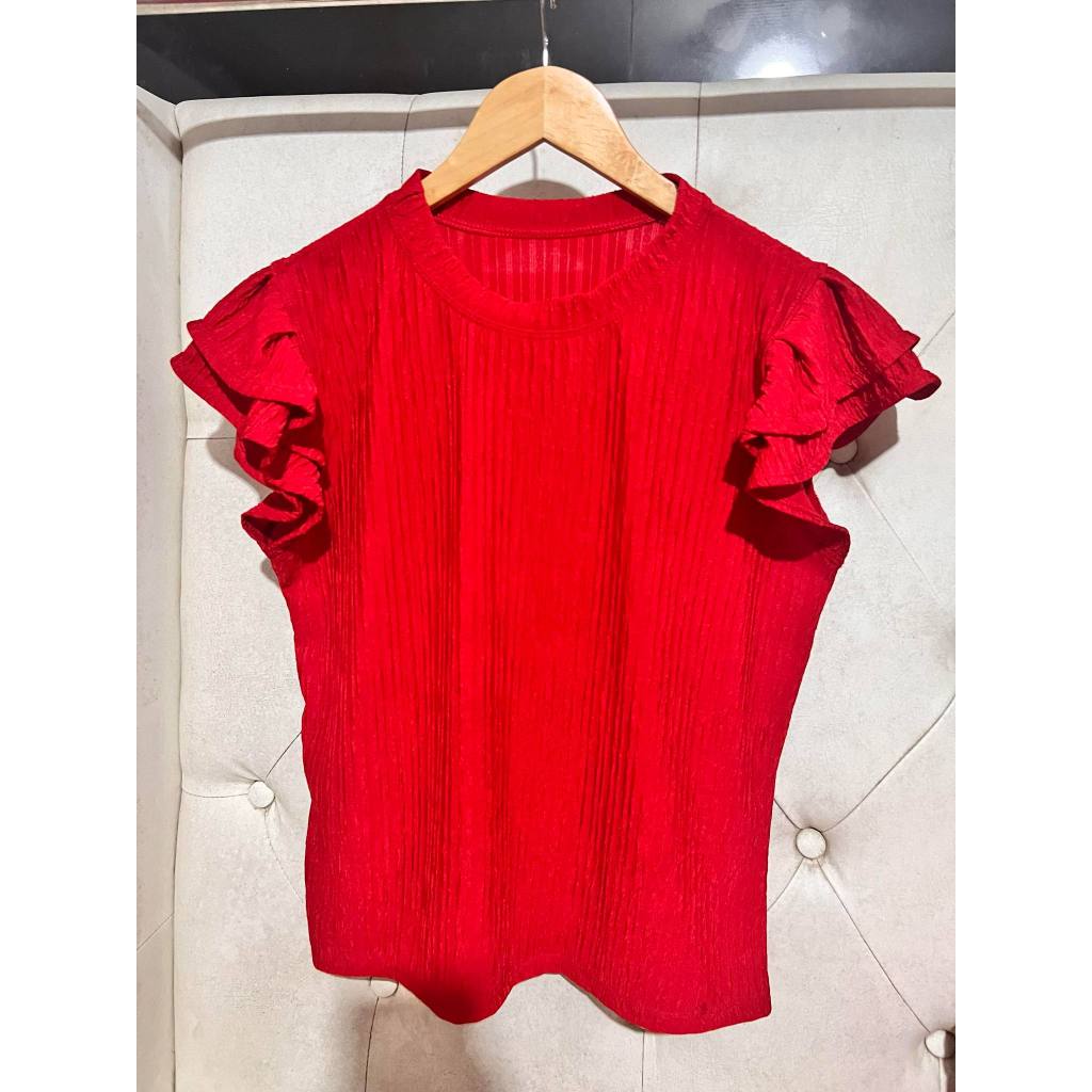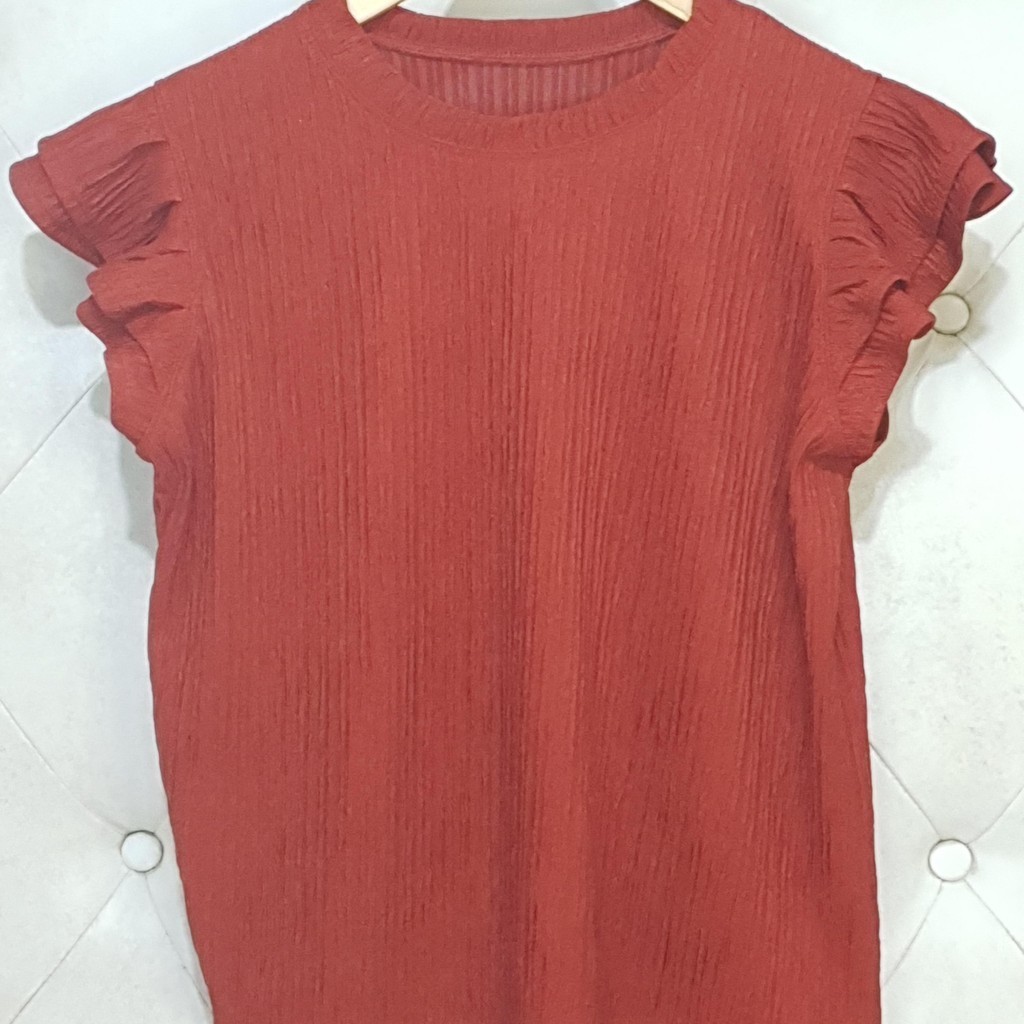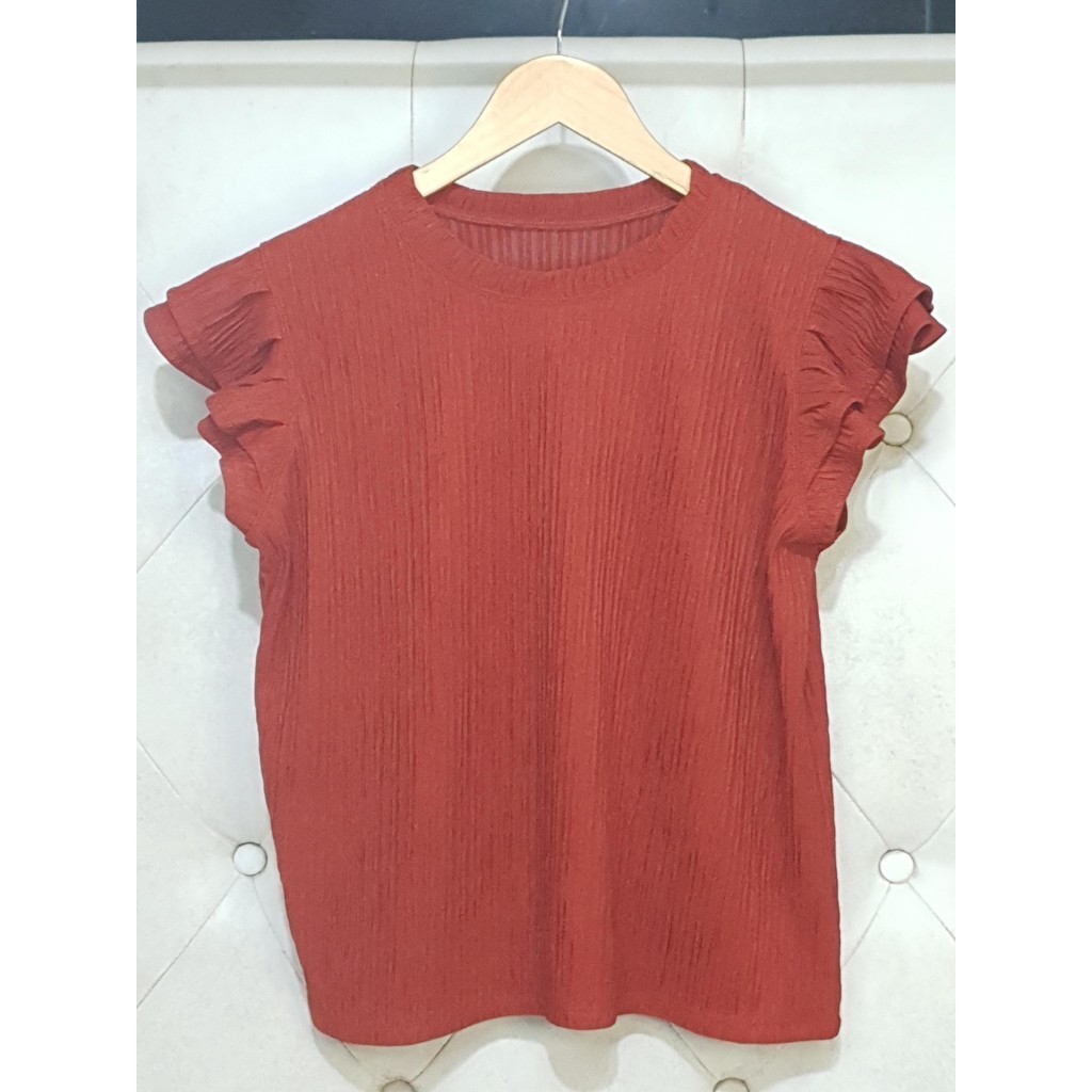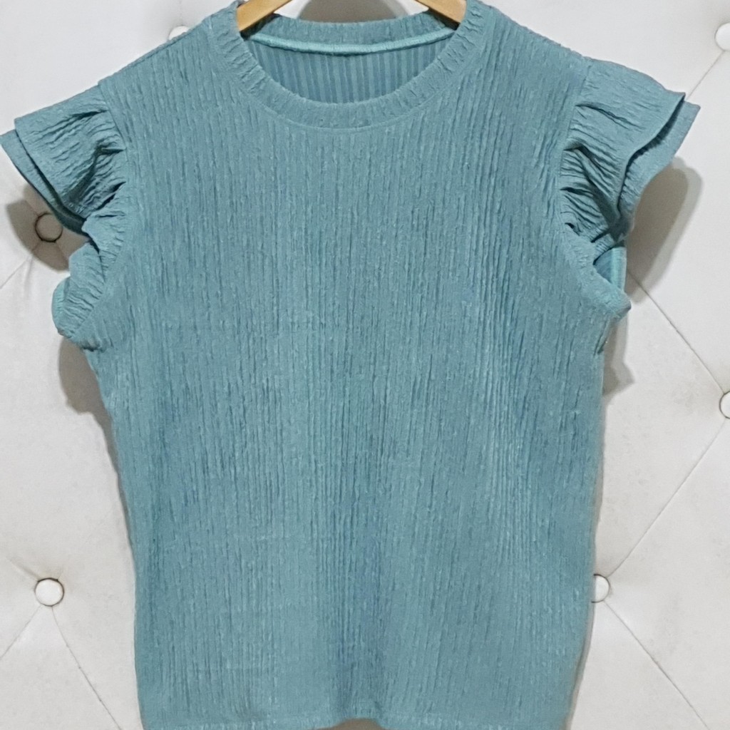 FEG Clothing Bark Crepe Blouse1 - Round Neck Ruffles