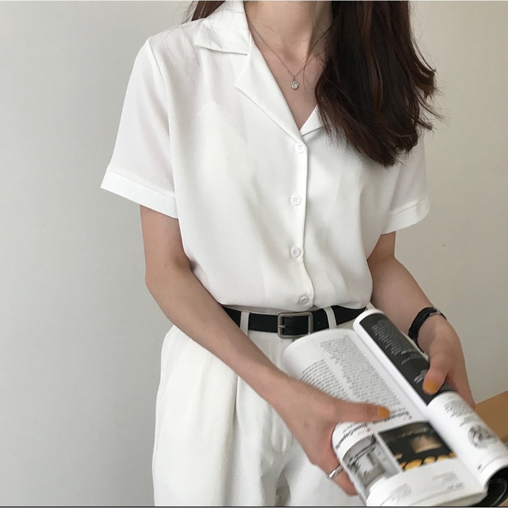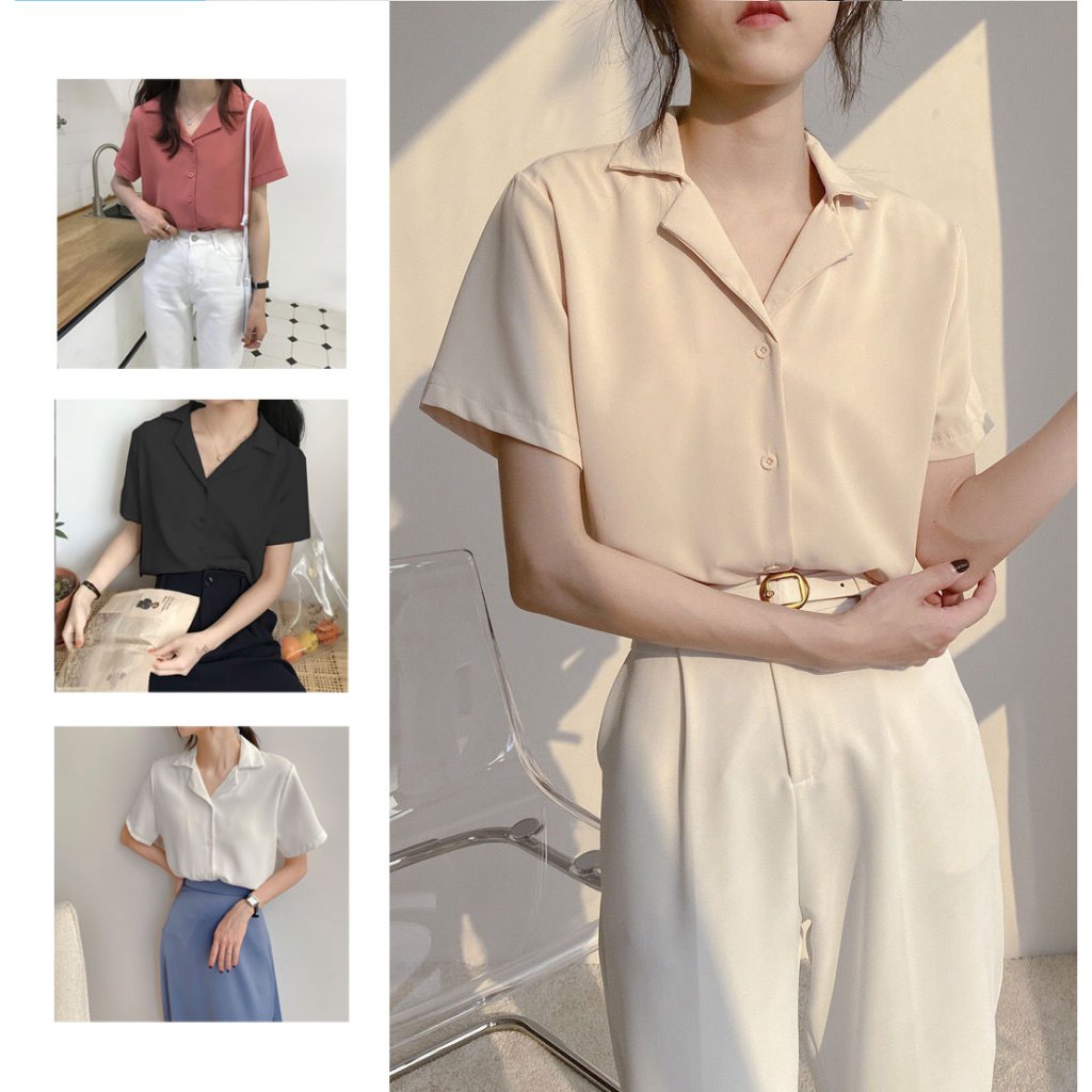 LILIA Blouse For Women Korean Style Short Sleeve Chiffon Plain Shirt Tops