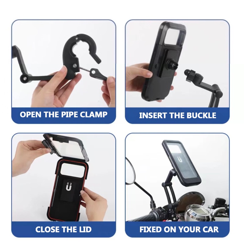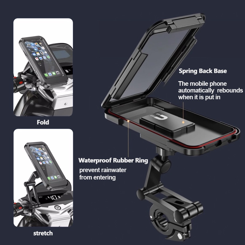 Motorcycle Bike Phone Mount Waterproof Adjustable Holder for Smartphone TPU Touch Screen Wear a hat