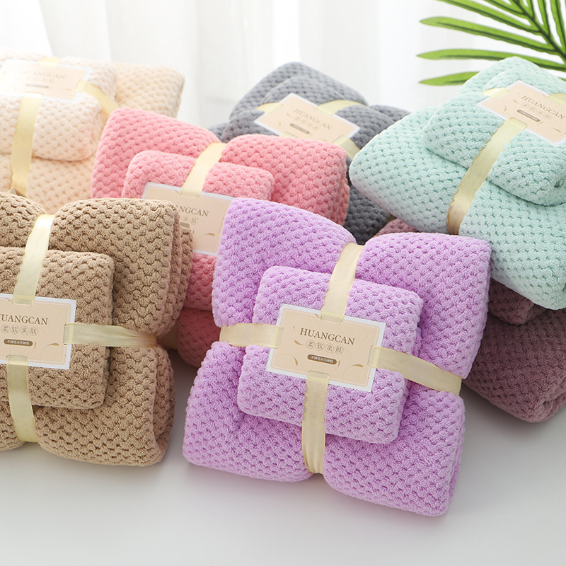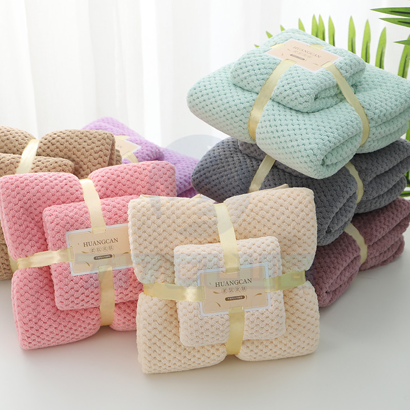 Best 2 in1 High Quality Pure Cotton Towel Coral fleece bath towel Set super-absorbent quick drying