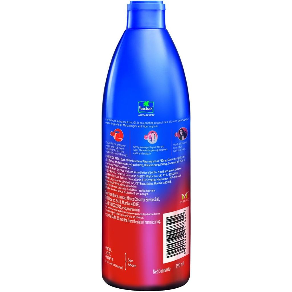 Parachute Advansed Ayurvedic Hot Oil,Warming Coconut Hair Oil,Frizz Free Hair, 190ml