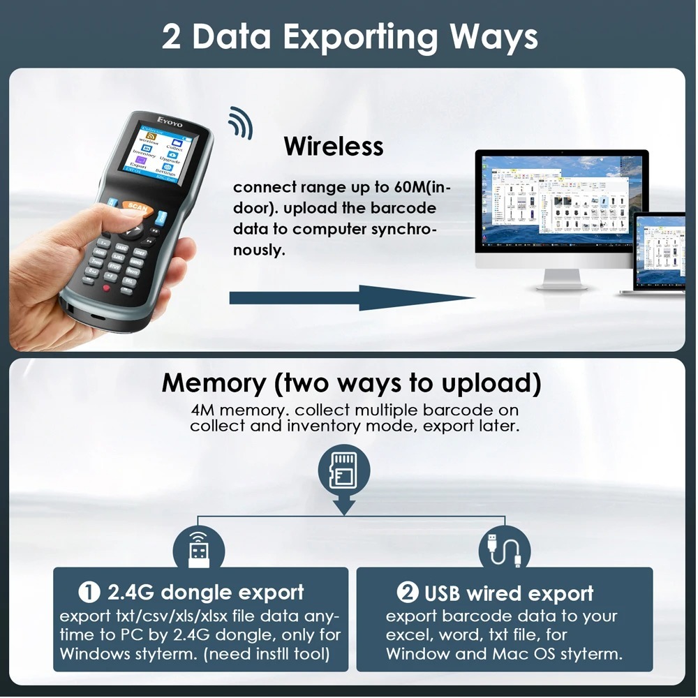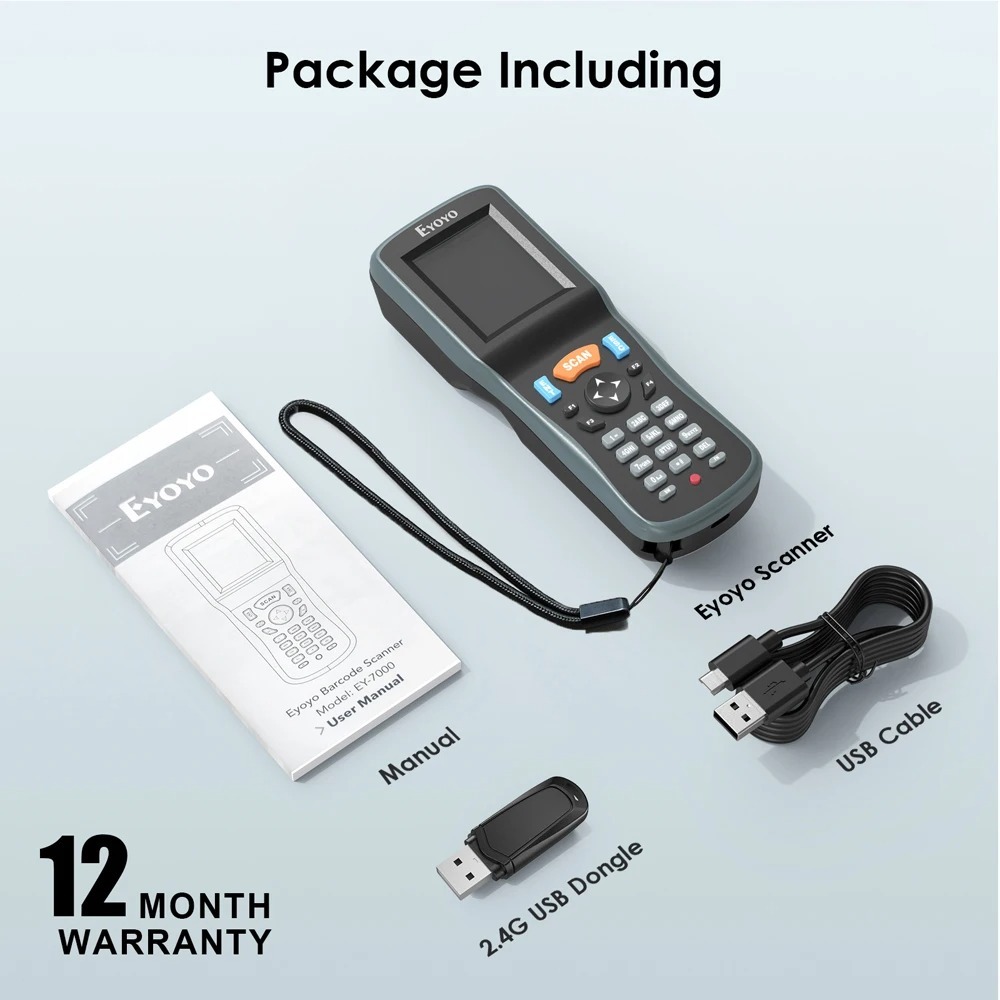 Eyoyo 2D Wireless Barcode Scanner Portable Data Collector Counter BarCode Reader Inventory Scanner for Store, Supermarket, Warehouse Handheld Data Terminal Invent