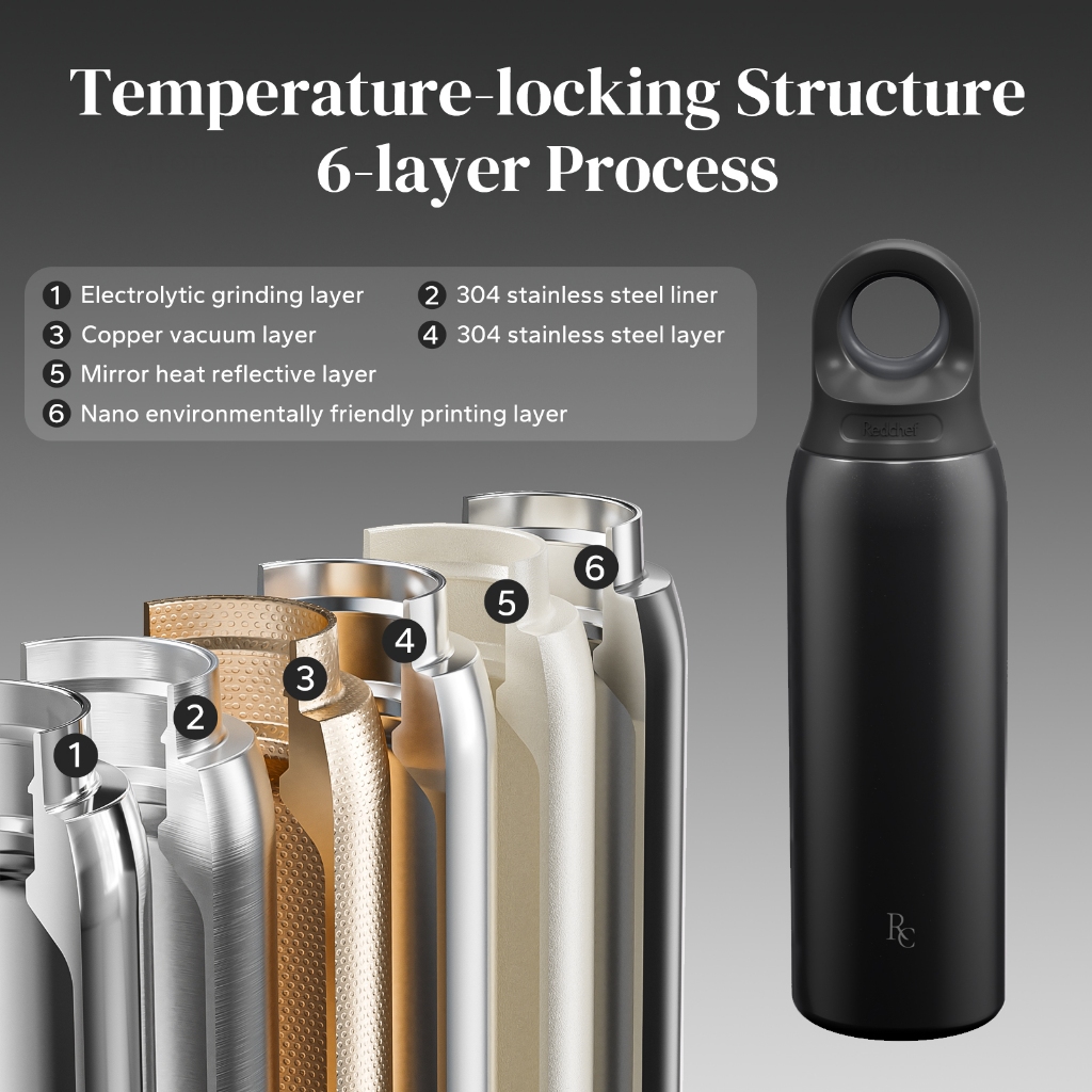 Redchef 650ml Water Bottle Insulated Stainless Steel One-Hand Open 24H Cold 12H Hot Leakproof BPA Free for Gym Travel School