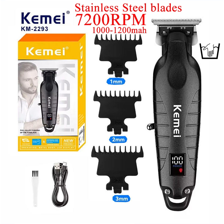 Kemei KM-2293 Professional Hair Clipper 1200Mah Rechargeable 0mm Cordless Hair Trimmer USB Fast charging Barber Machine KM-2299 Upgraded washable