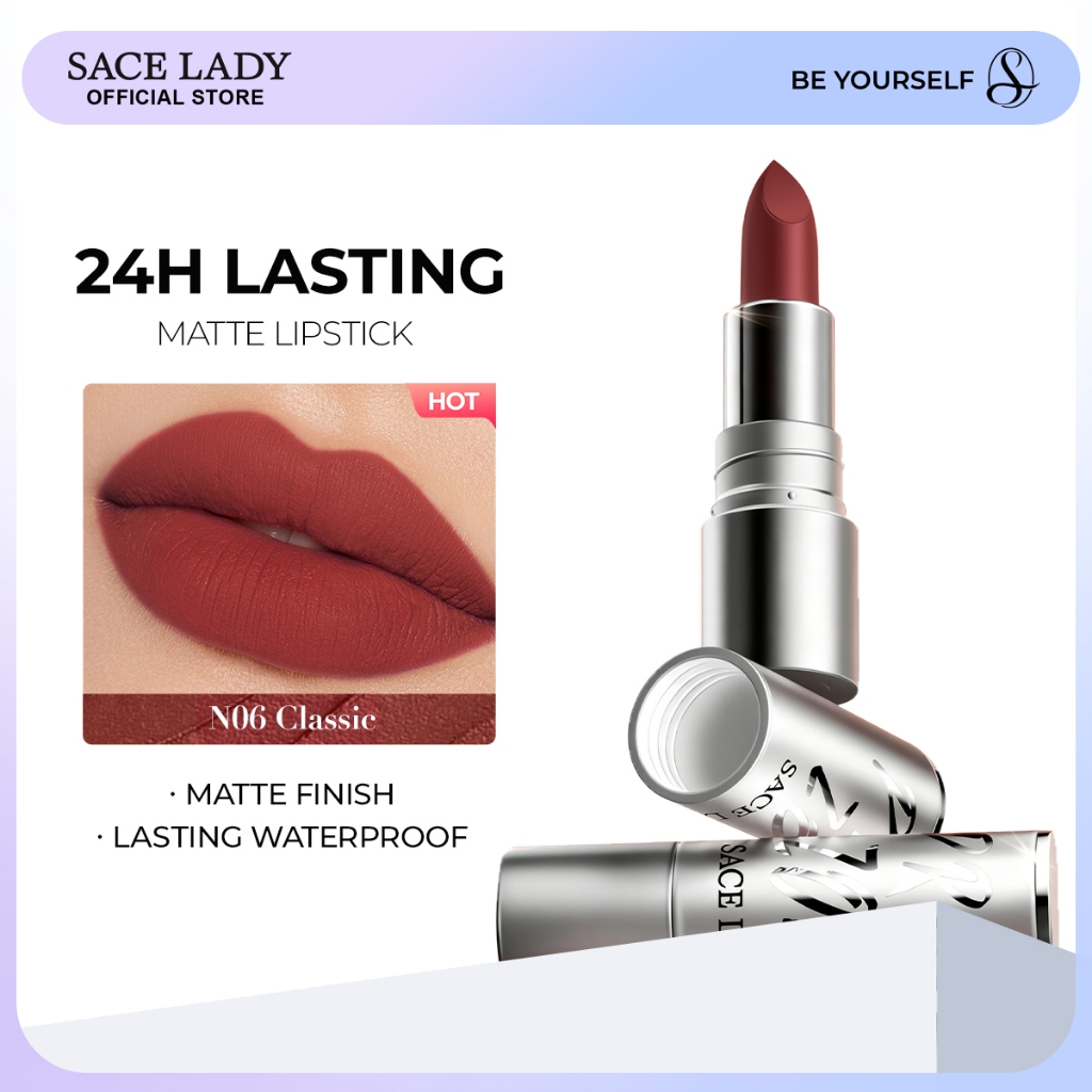 SACE LADY Matte Lipstick 24H Long Lasting Waterproof High Pigmented Non-sticky Finish Lock Color