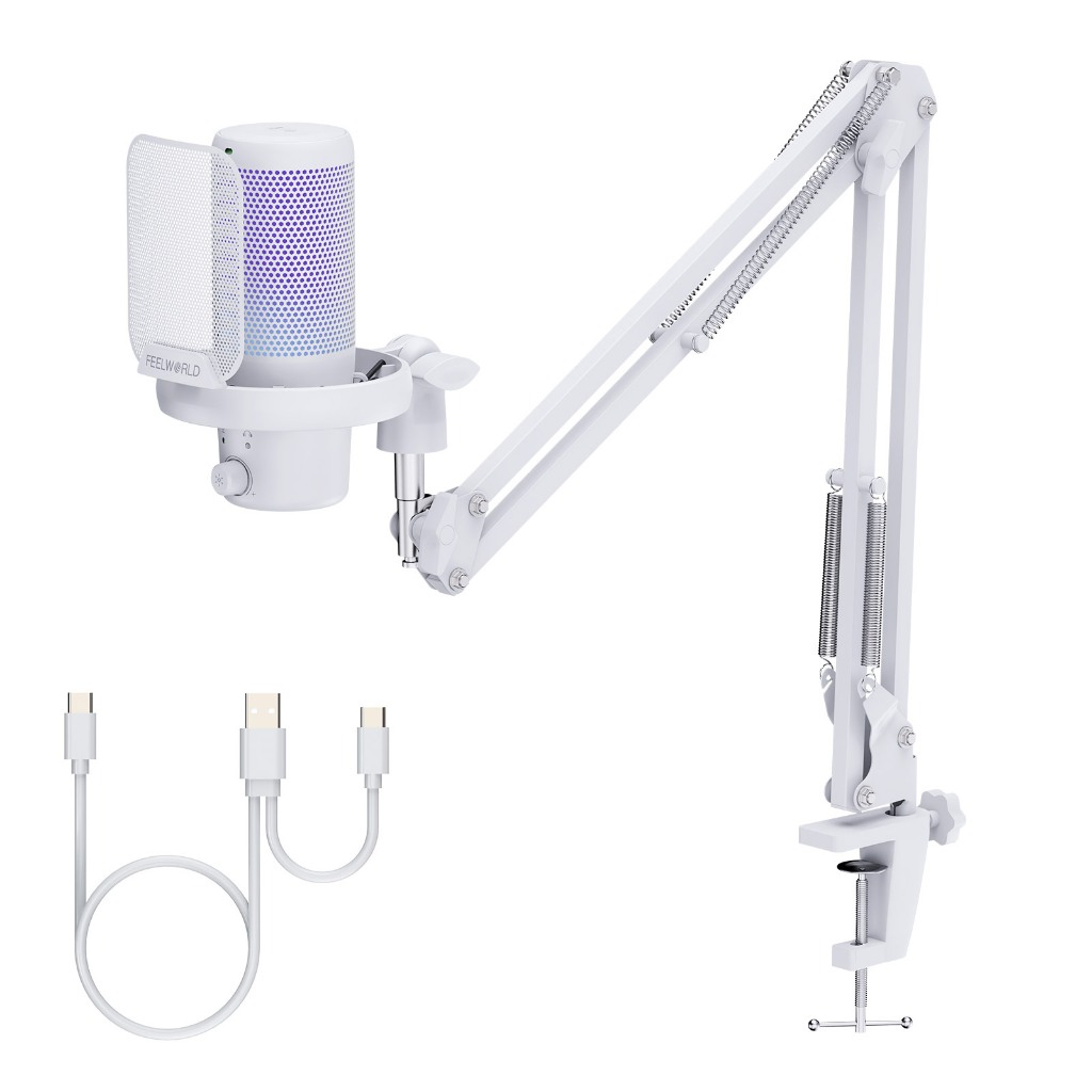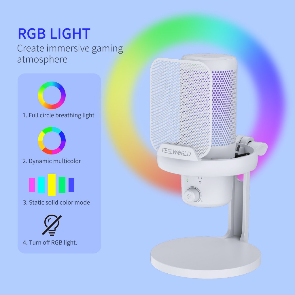FEELWORLD VM1 Pink Gaming PC USB Microphone Condenser Mic with Noise Cancellation Mute RGB Light, Computer Accessories for Gamer YouTube Twitch Podcast Streaming Recording Online C
