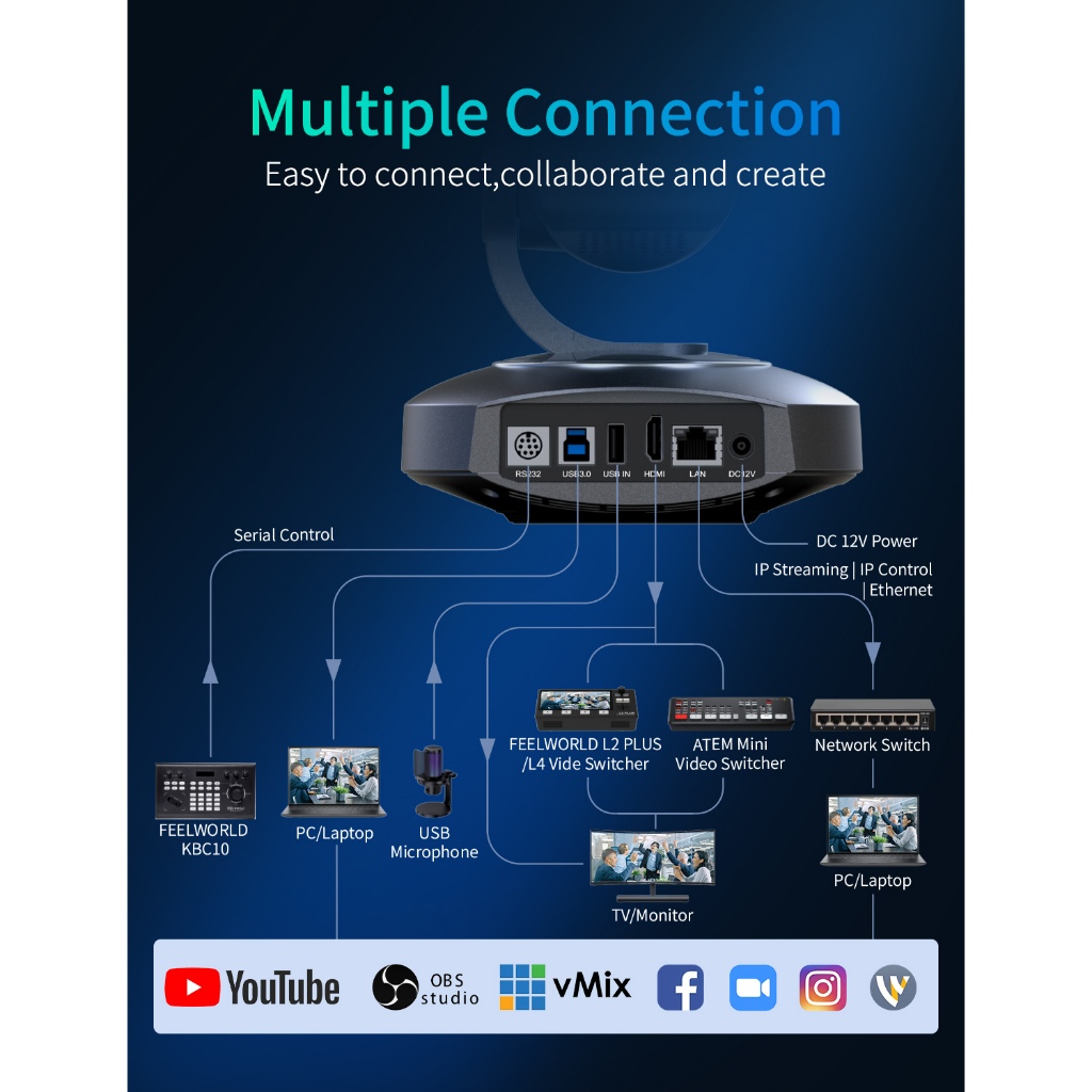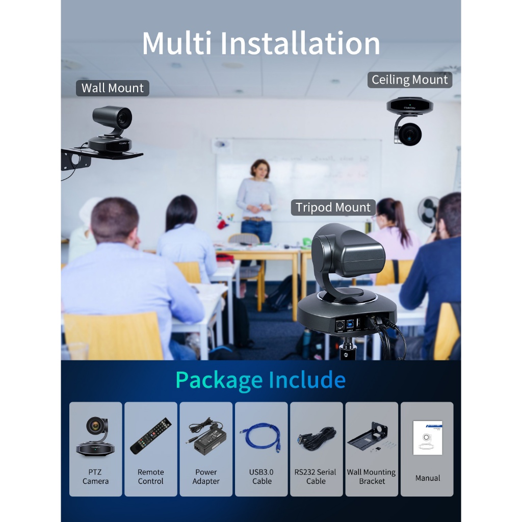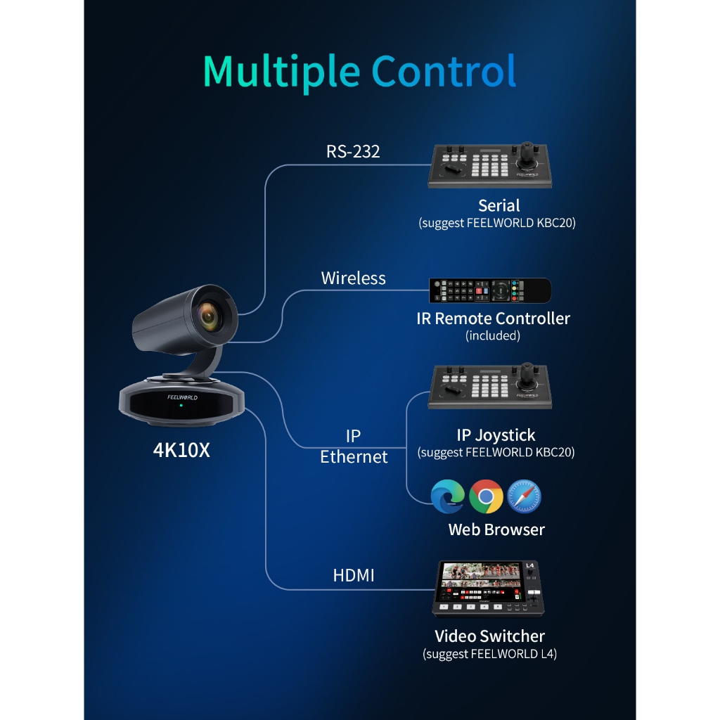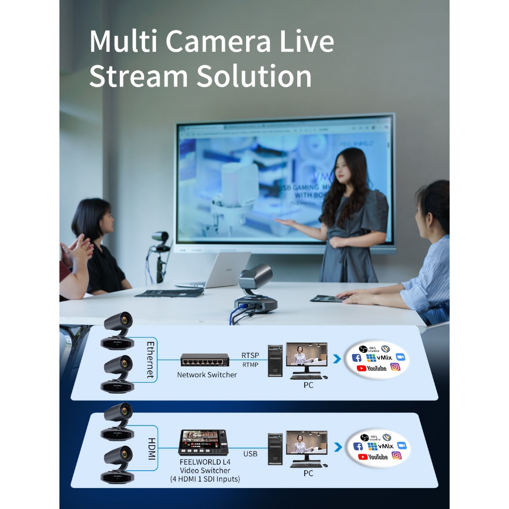 FEELWORLD 4K10X PTZ Camera 4K Resolution 10X USB HDMI for Video Conference Rooms Live Streaming Church Worship and Event with Zoom YouTube Teams OBS, AI Tracking Auto Focus POE Sup