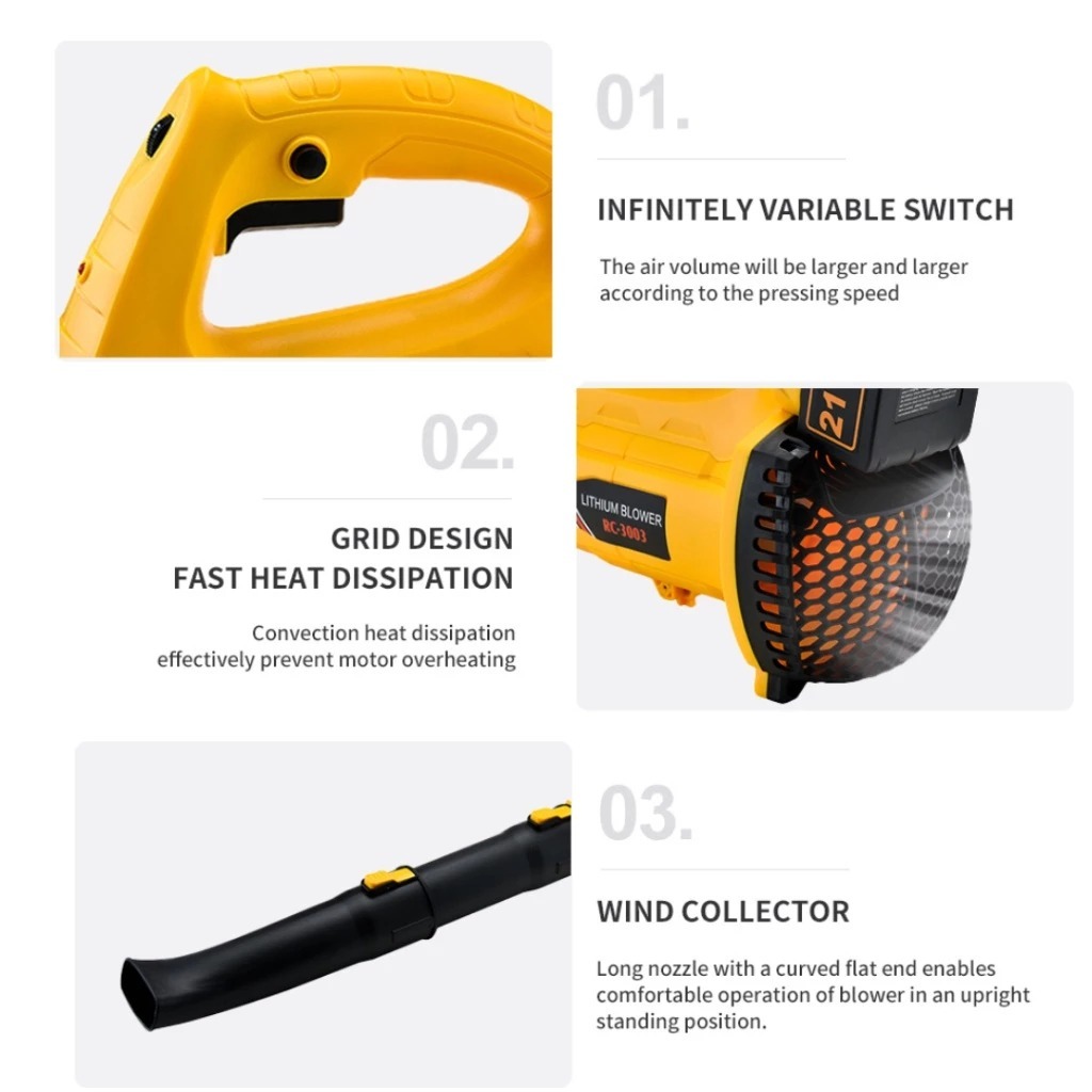 Speed 3000W Wired Leaf Blower Industrial Blower Snow Blower Dust Sweep Leaf Garden Tool
