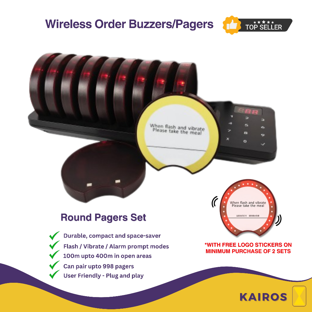 Wireless Restaurant Pagers, Cafe pagers, order buzzer, round order pagers