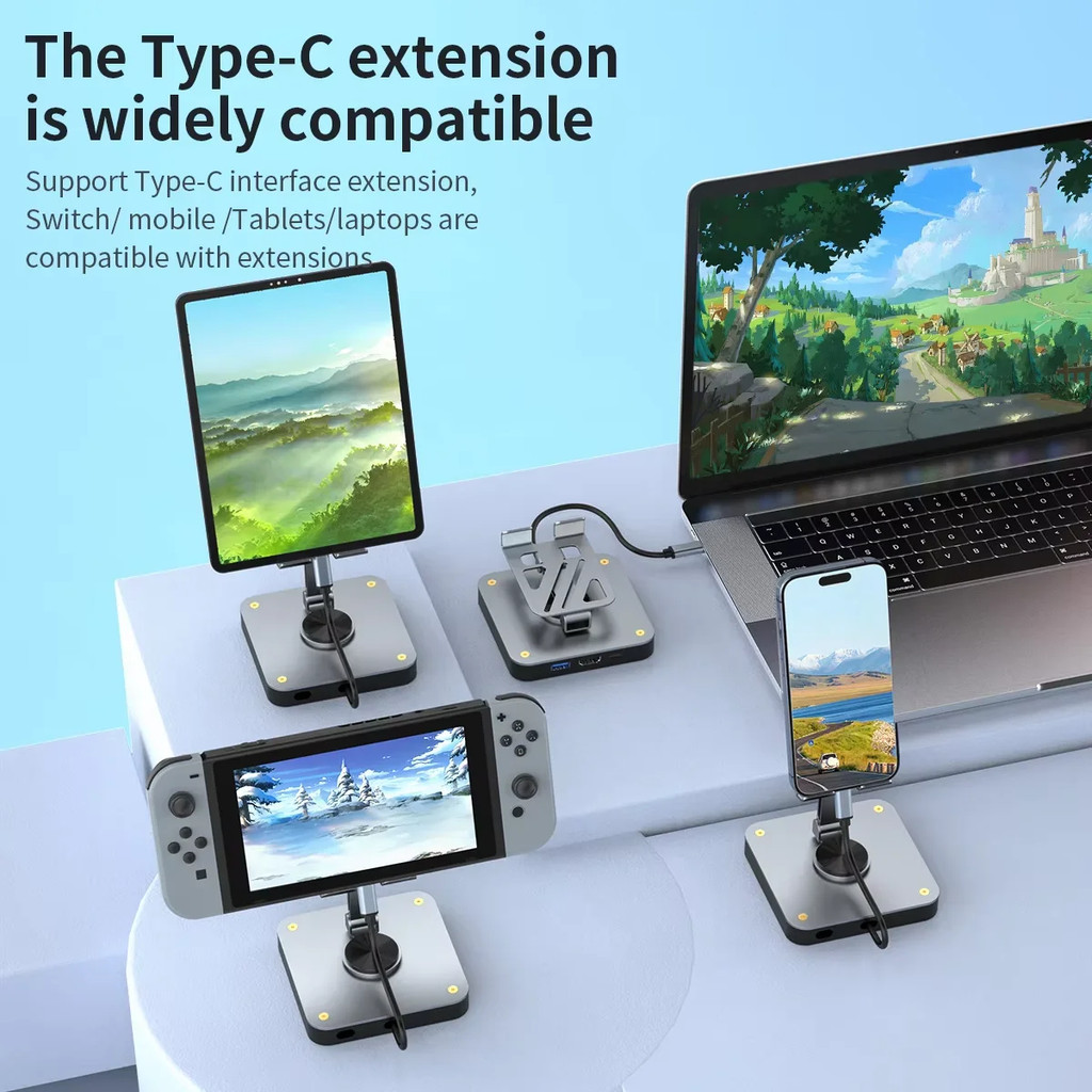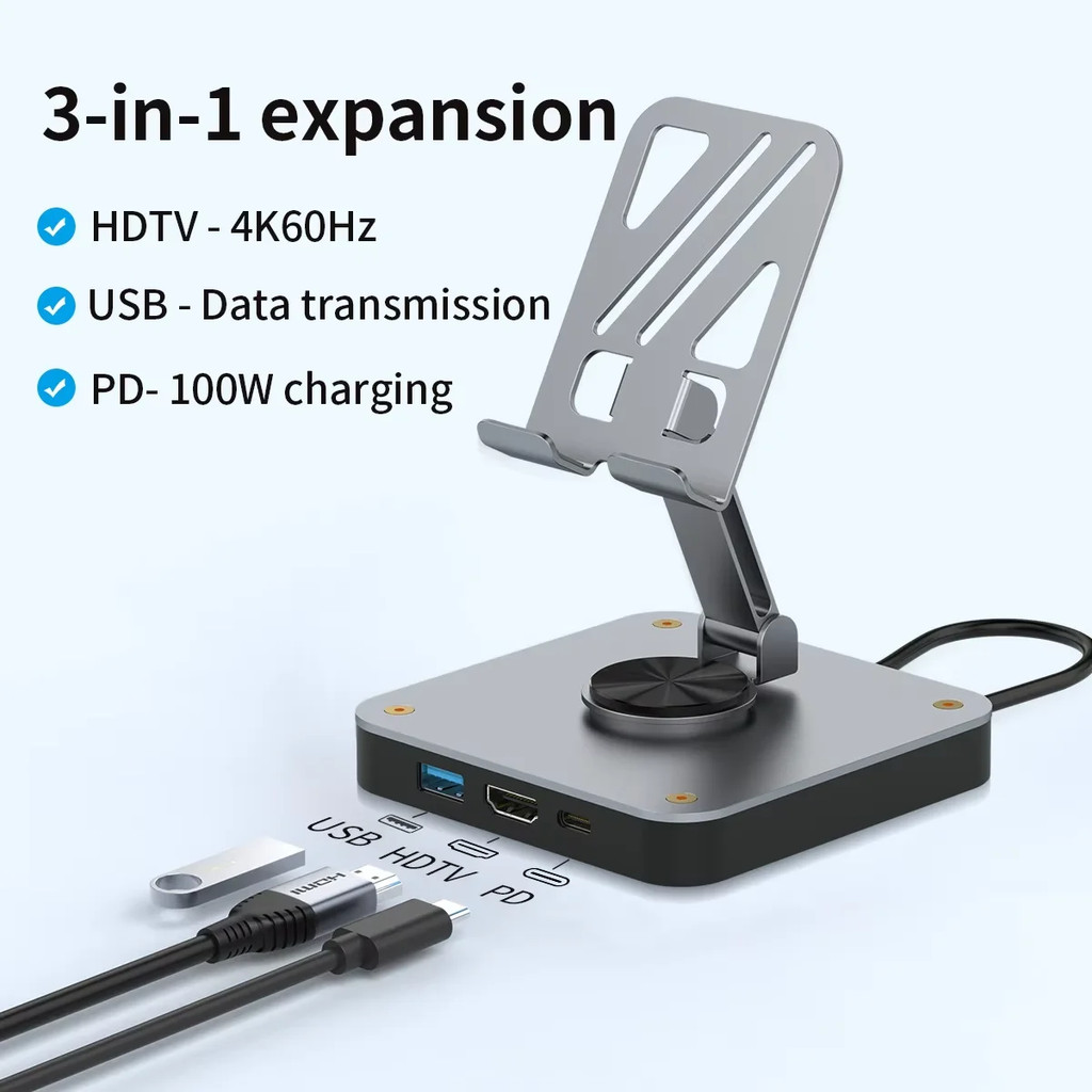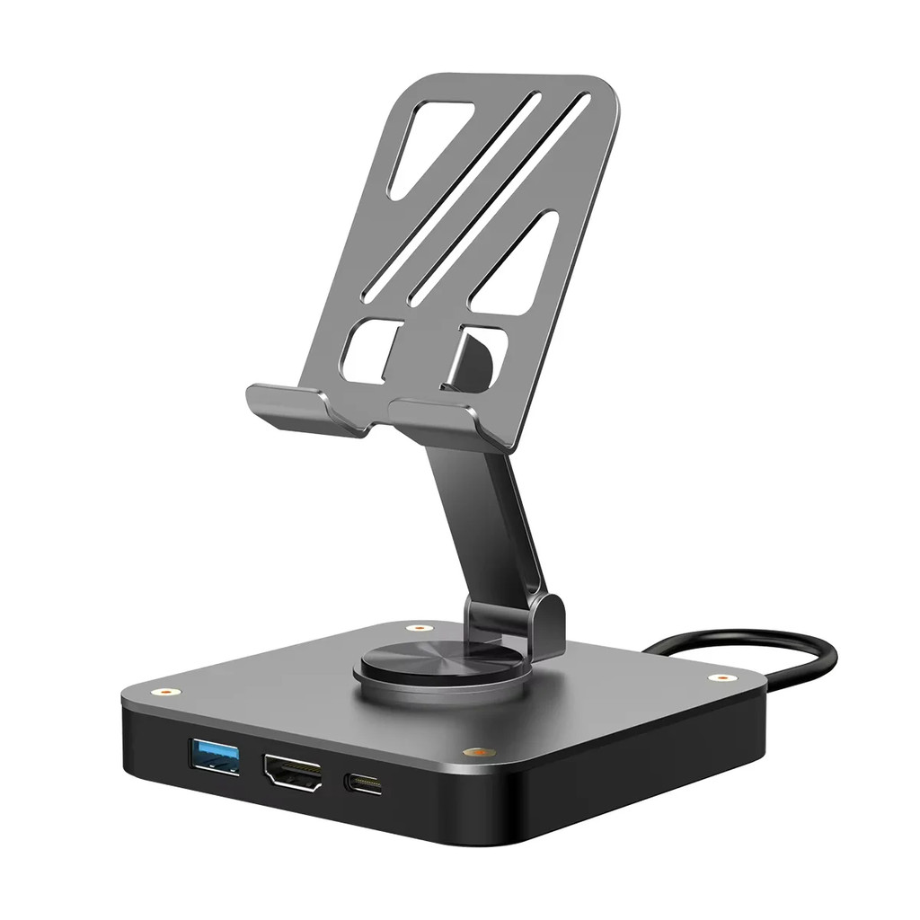USB-C Docking Station Tablet/Phone Folding Stand with 4K 60HZ HDMI PD 100W USB 2.0 Ports for iPad Pro/Air iPhone 16 Switch Mac