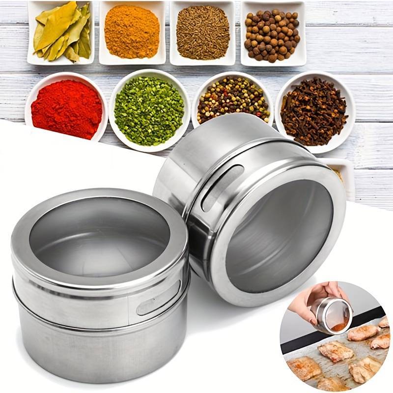 4/6pcs Set of Upgraded Magnetic Spice Jars Wall-Mounted Spice Boxes Visual Sealed Salt Pepper Bottle
