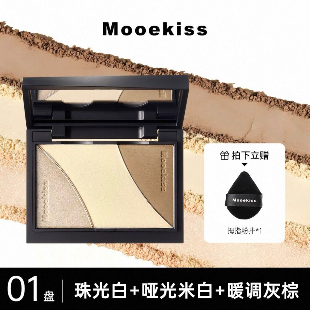 Send It on the Same Day✨16.5g Large Capacity✨ Mukoshi Highlight Contour One-Piece Palette Magnetic Detachable Contour Palette Mooekiss Three-Color Highlighter Contour Nose Shadow One-Piece Ginger Highlighter