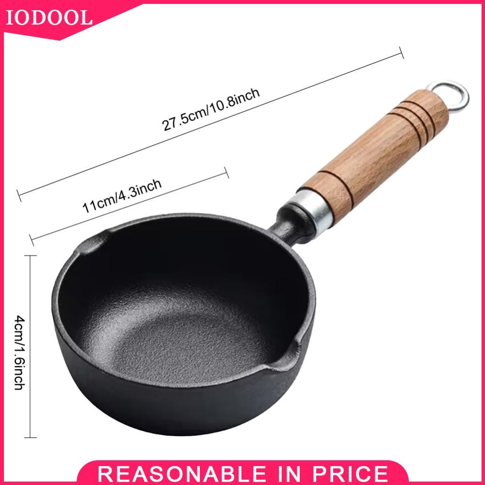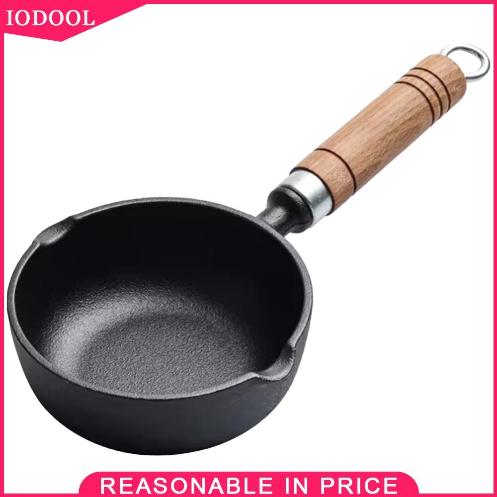 Iodool❃【High Quality】 11/13cm Cast Iron Mini Egg Frying Pan Nonstick Small Wok Wood Handle Steak Auxiliary Food Pan with Pour Spout Butter Melting Pot