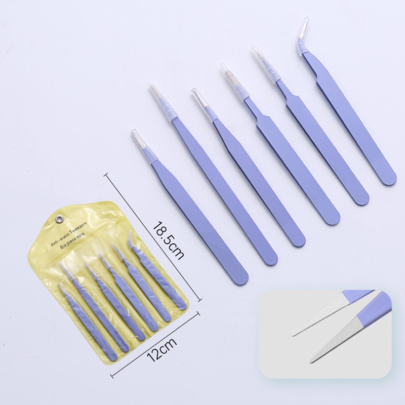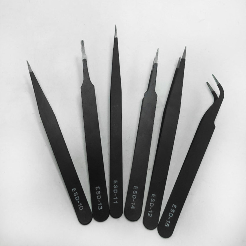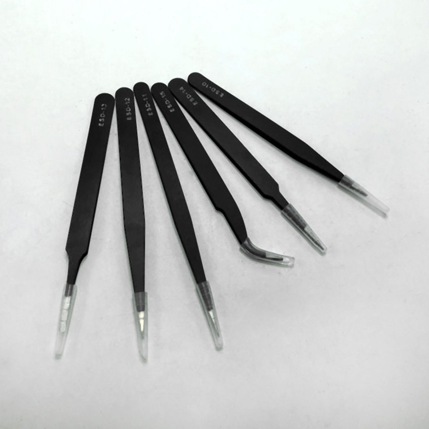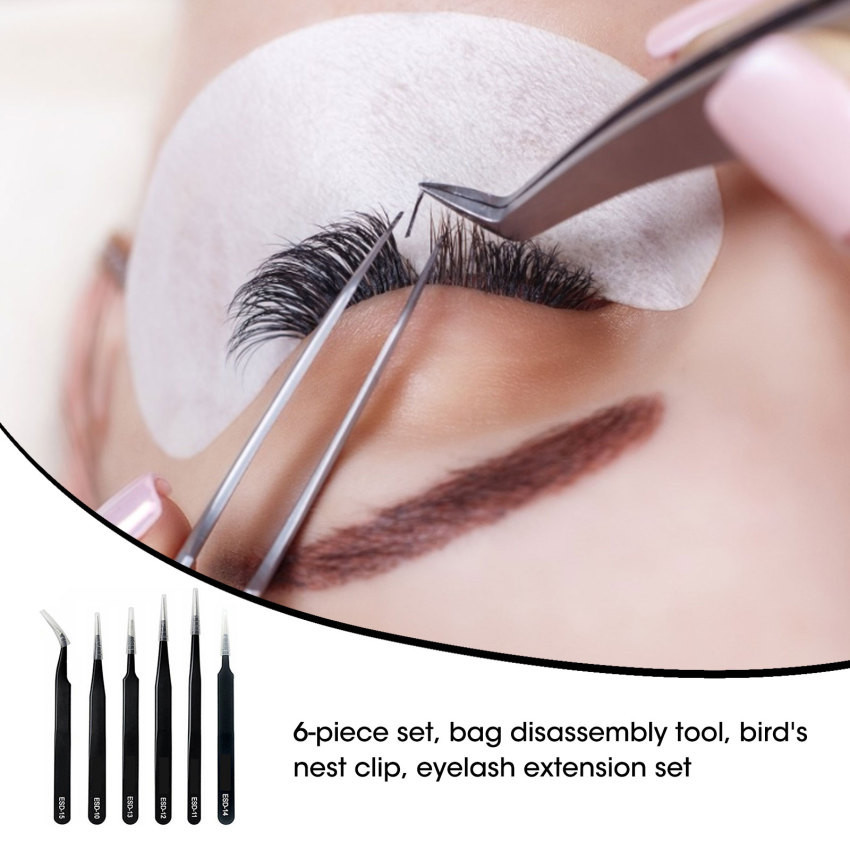 Anti Static 6Pcs/Set Eyelash Tweezer Tools Kit Precision Tweezers Set Stainless Steel
