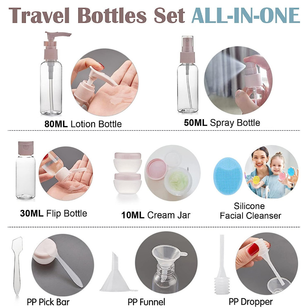 11pcs Travel Bottles Set Cosmetic Bottle Plastic Bottle Skincare Liquid Lotion Spray Bottle