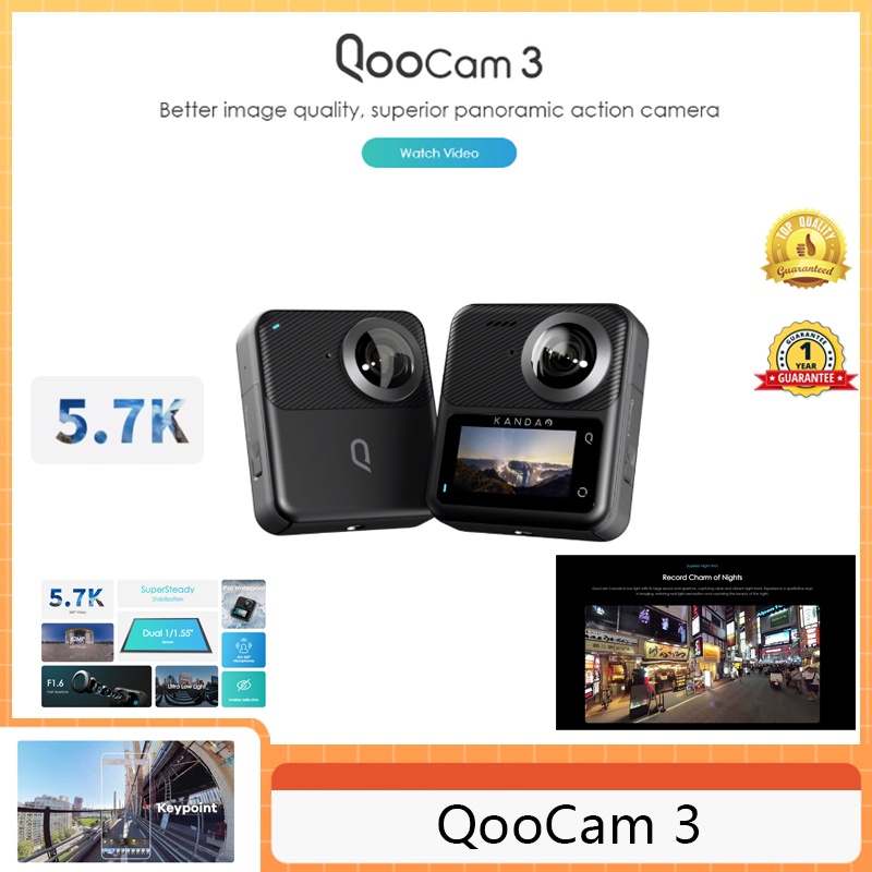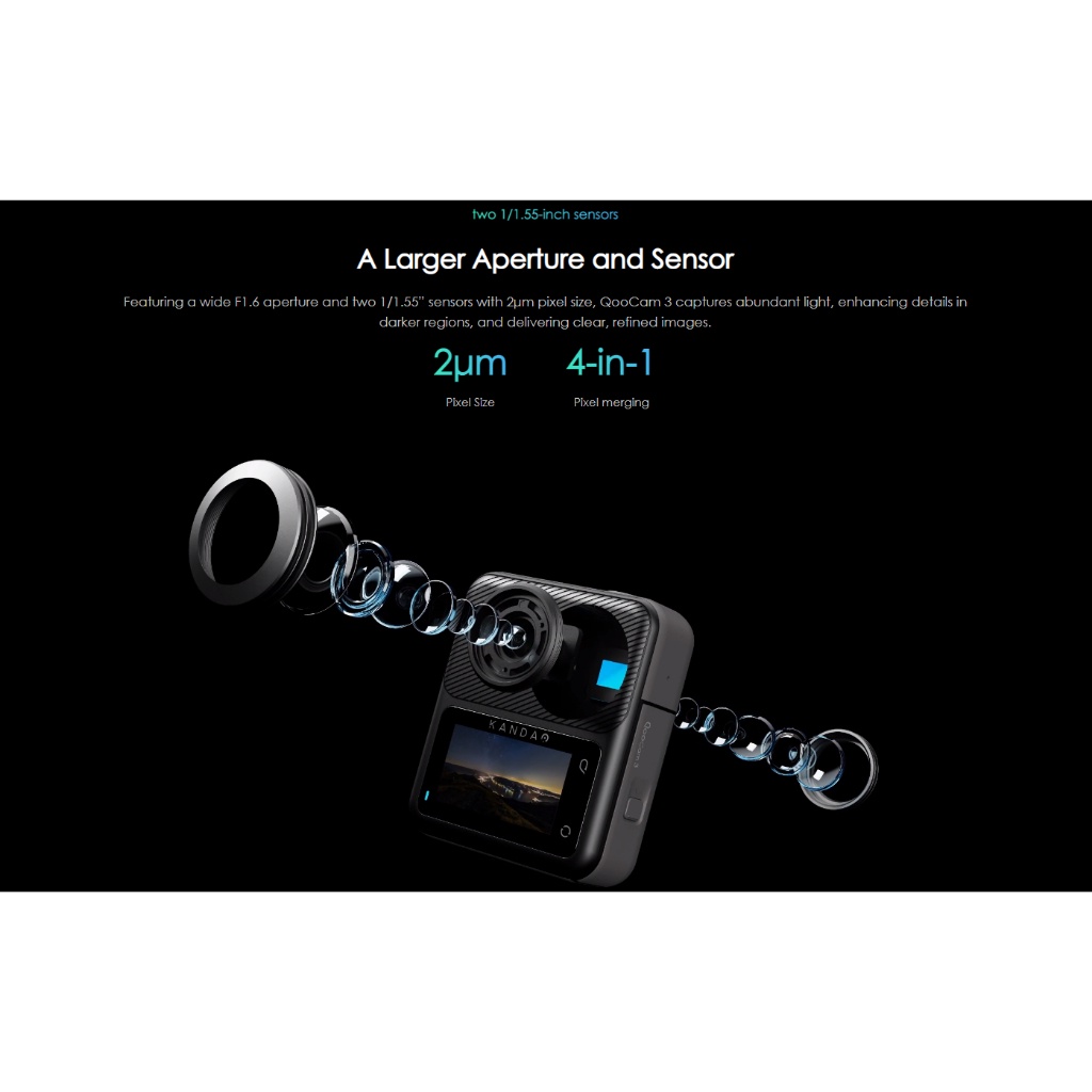 Kandao QooCam 3 Panoramic Sports Camera 5.7K Panoramic Straw-Aperture 360° Cycling Sports Waterproof Shakeproof ip68