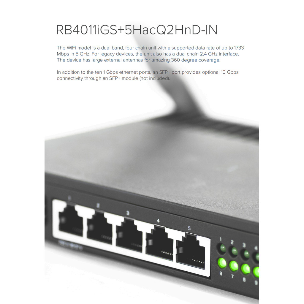 MikroTik RB4011iGS+5HacQ2HnD-IN - Router w/ Dual Band Wi-Fi, (10) Gigabit Ports, (1) 10G SFP, RB4011