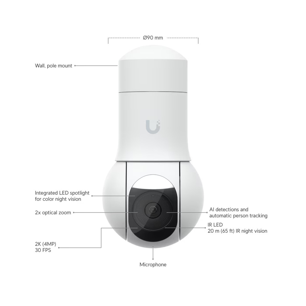 Ubiquiti UVC-G5-PTZ - Outdoor Camera w/ Pan-Tilt-Zoom, AI Smart Detection, IR Night Vision, 2K 30FPS
