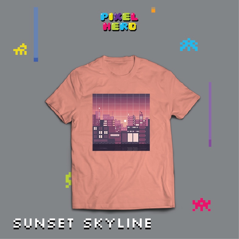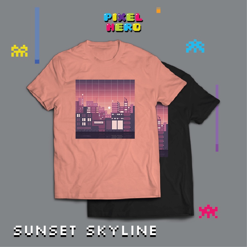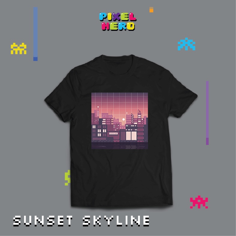 Pixel Hero Tees / T-Shirt: SUNSET SKYLINE