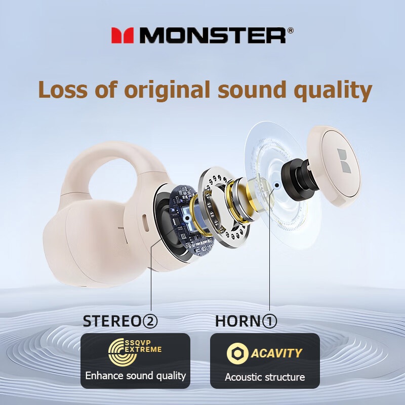Monster XKT21 True Wireless Bluetooth Earphone Ear-Clip Surround Stereo HD Call Touch Control Gaming Earbuds With Mic