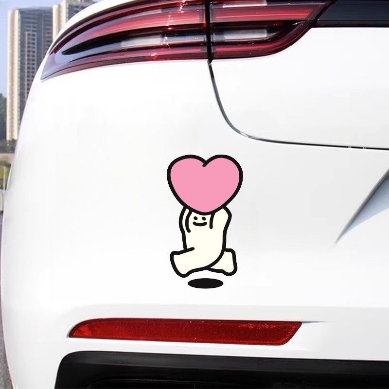 【SARA】Car Sticker Cute Heart-Shaped Running Little Man Giving Heart Funny Tablet Laptop Decorative S