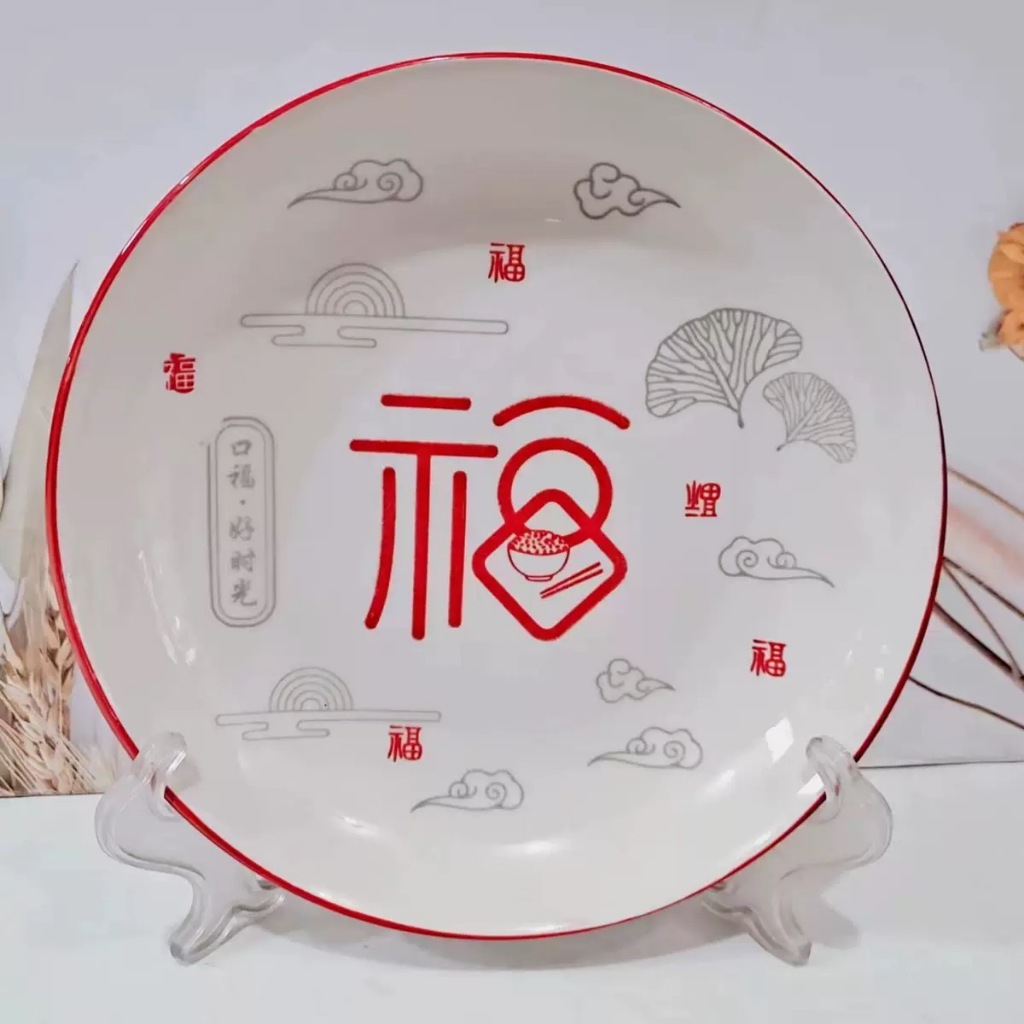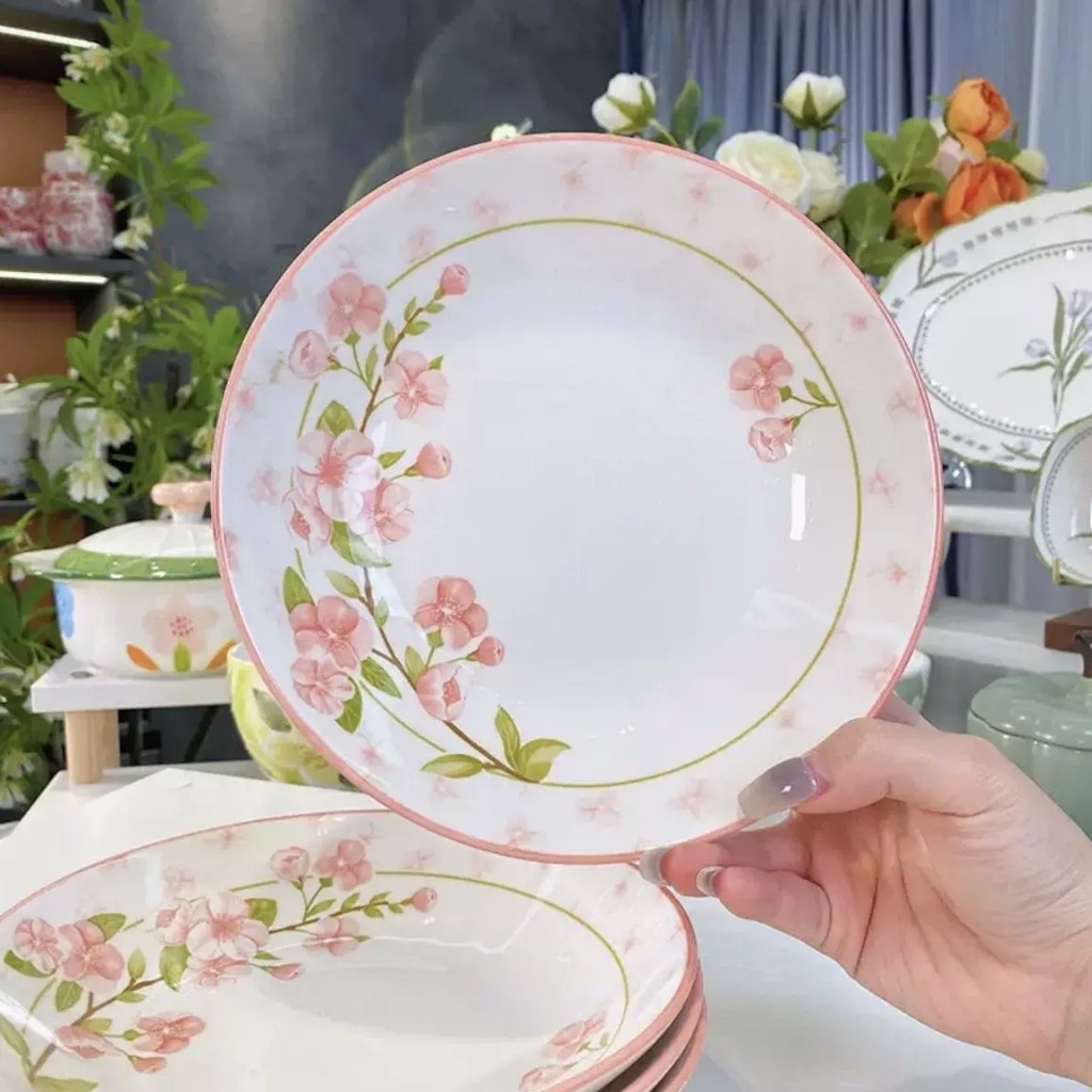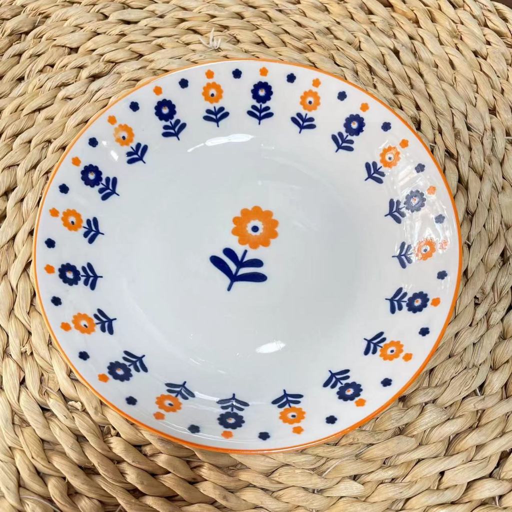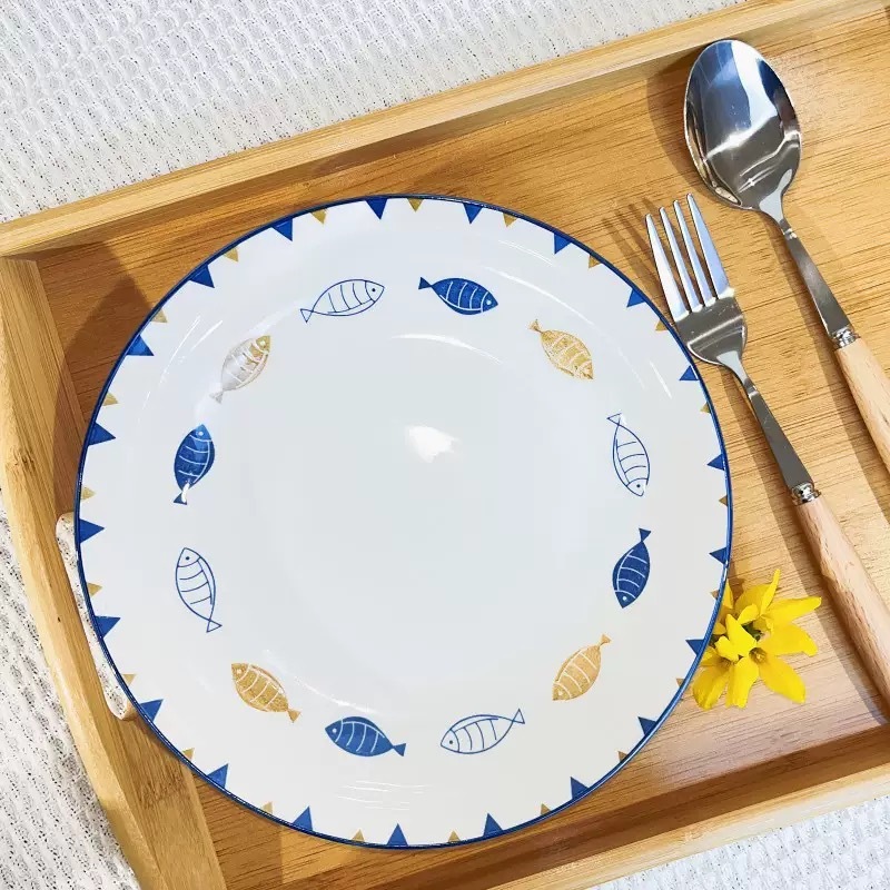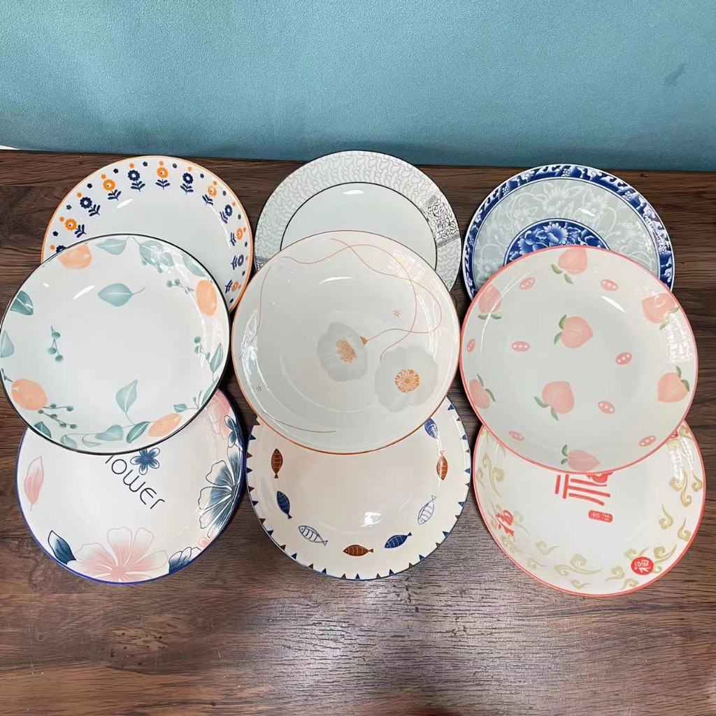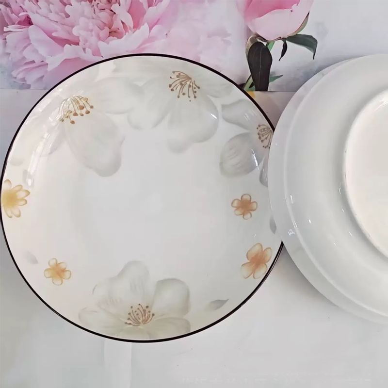 8.3 inch Household ceramic plates, simple ceramic tableware discs, microwave friendly