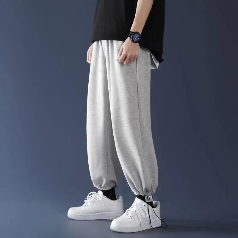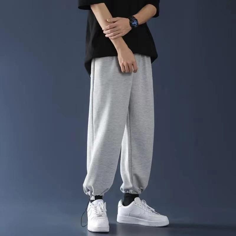 ACHSAWAKE Unisex Plain Cotton Jogger Pants Grey Harem Track Baggy Trousers Gym Gray Sweatpants