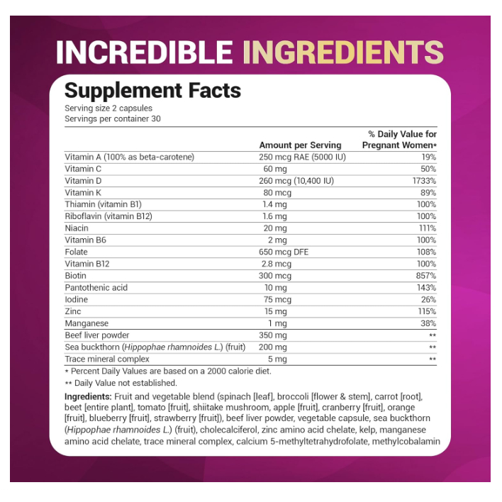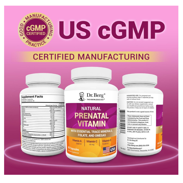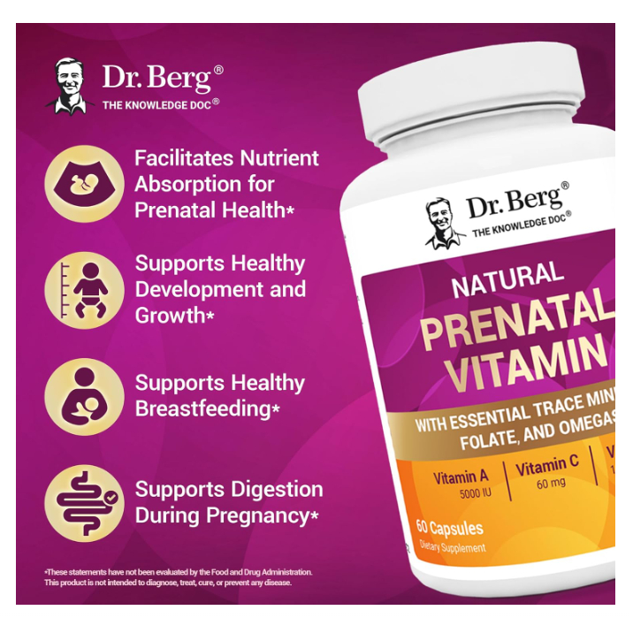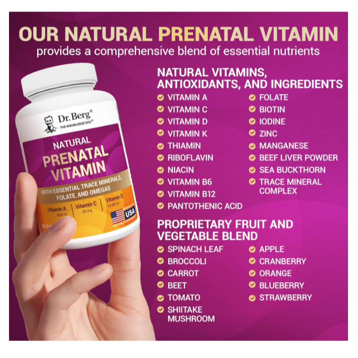 Dr. Berg Natural Prenatal Vitamins - Minerals Omegas & Superfood Extracts - Prenatal Supplement 60ct