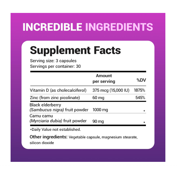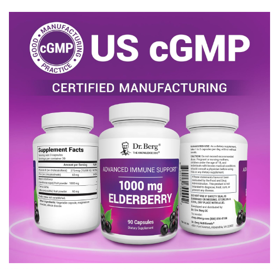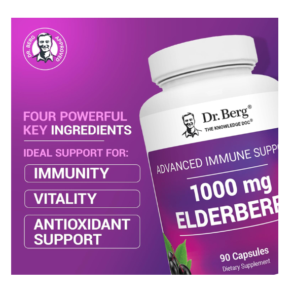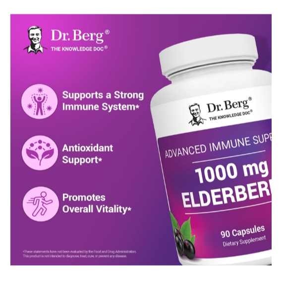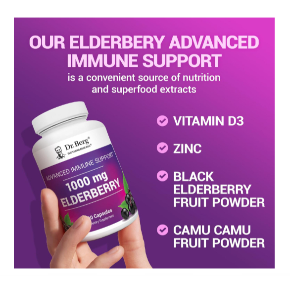 Dr. Berg 1,000 mg Black Elderberry Supplement 4-in-1 Advanced Immune Support with D3 & Zinc - 90ct