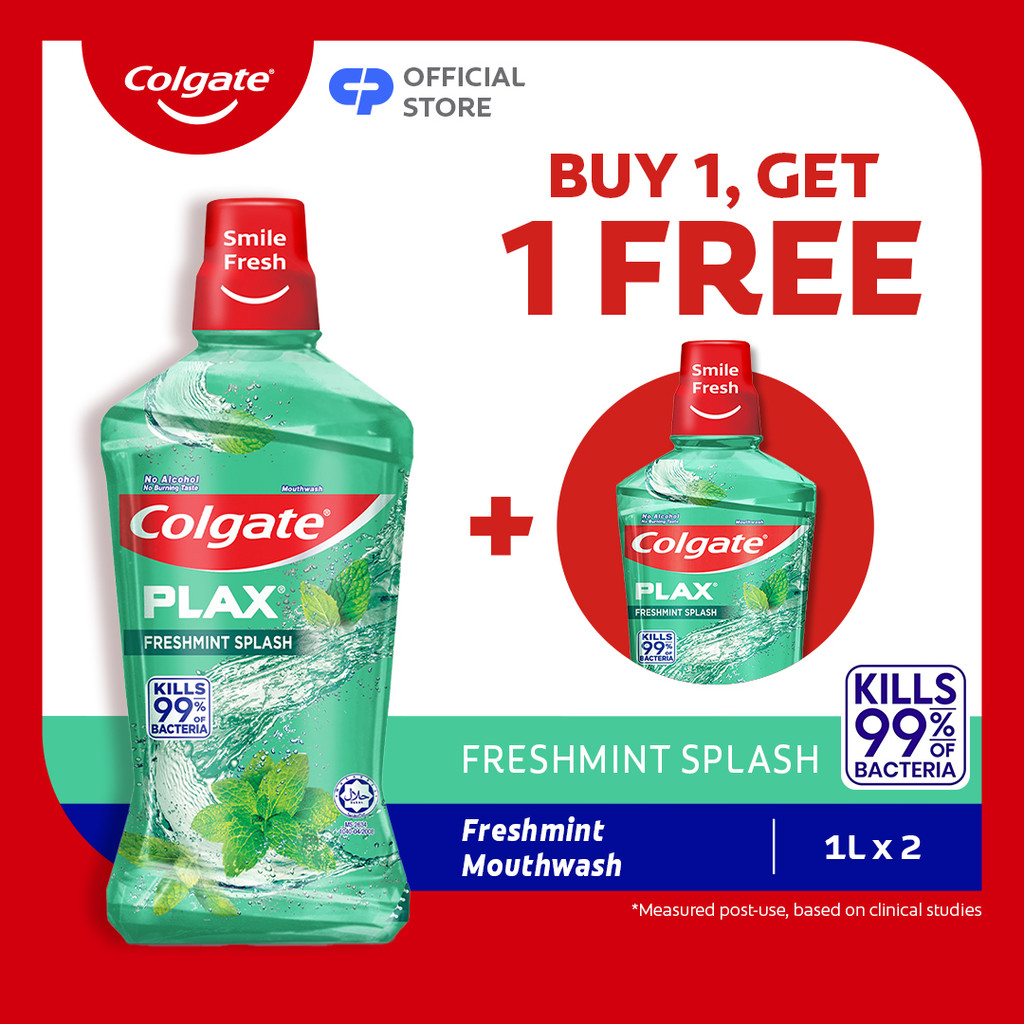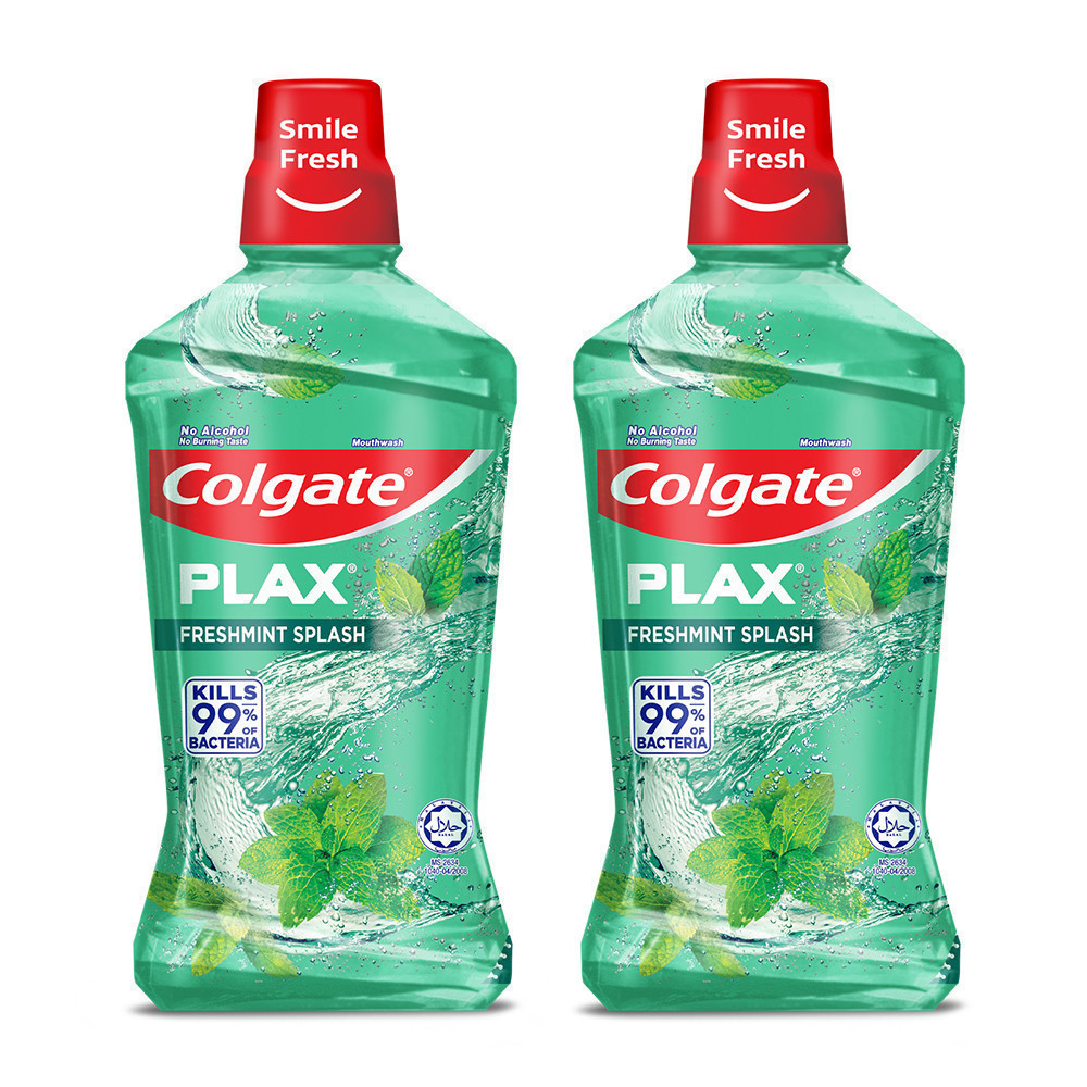 Colgate Plax Antibacterial Mouthwash Freshmint, No-Alcohol, Long-Lasting Freshness 1L x2