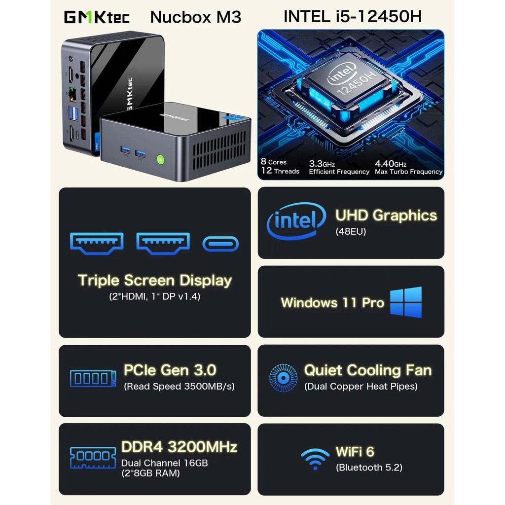 GMKtec M3 Nucbox i5-12450H Mini PC Win11Pro DDR4 3200MHz NVMeSSD WiFi6 BT5.2 Triple Display Computer