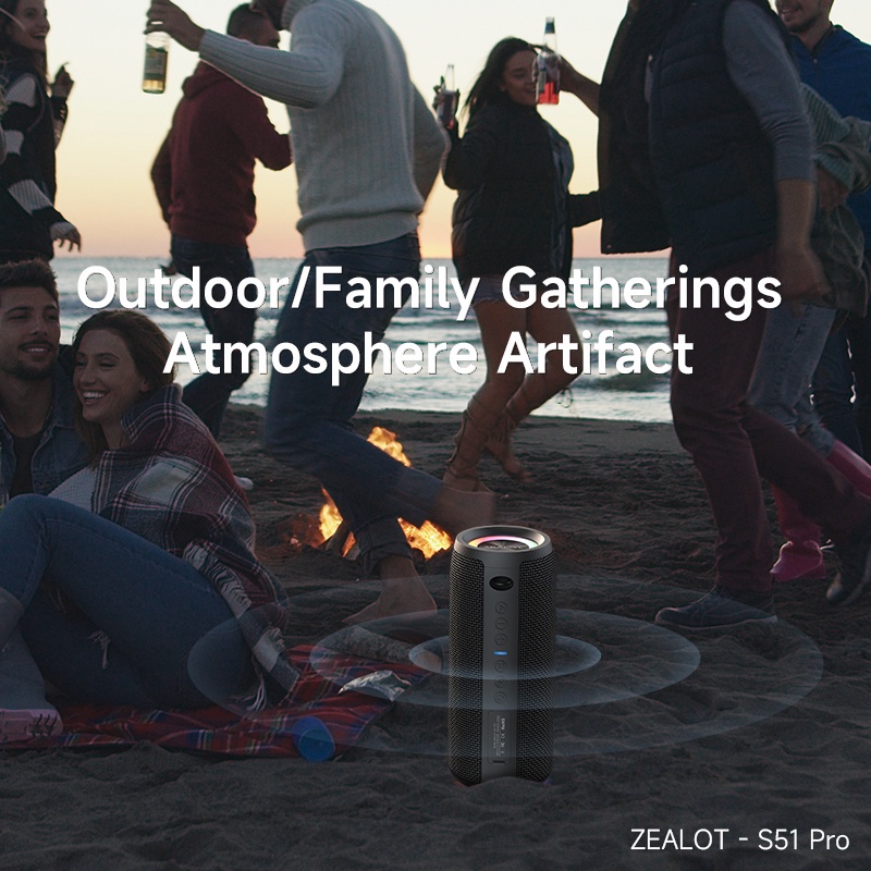 [Philippine In Stock]ZEALOT S51Pro Bluetooth Speaker Outdoor IPX6 Waterproof 40W BT5.2 Loudspeaker Stereo Surround Speaker with Cool Pulsing EQ Light