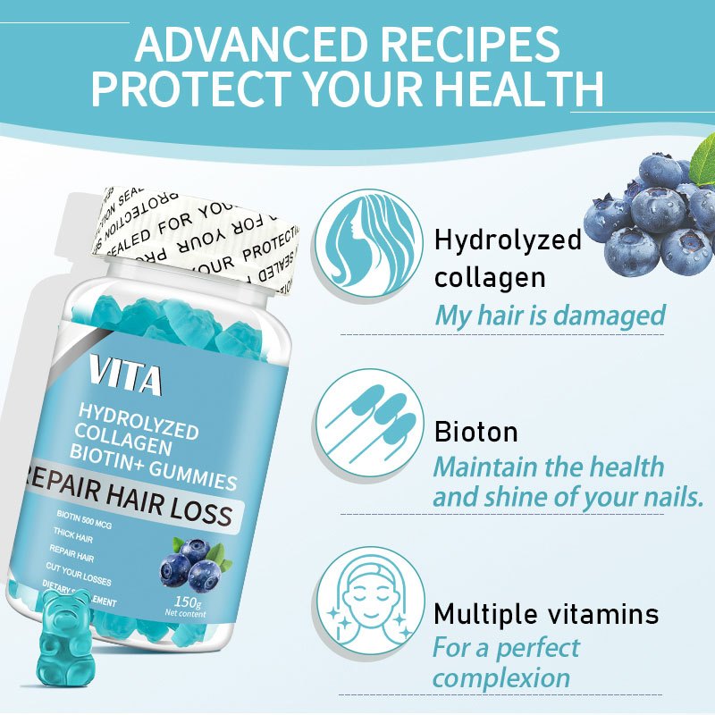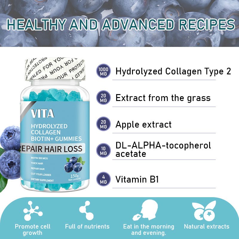 VITA Biotin Gummies With Hydrolyzed Collagen & Vitamin C Anti-hair Loss Strengthen Nails Whiten Skin