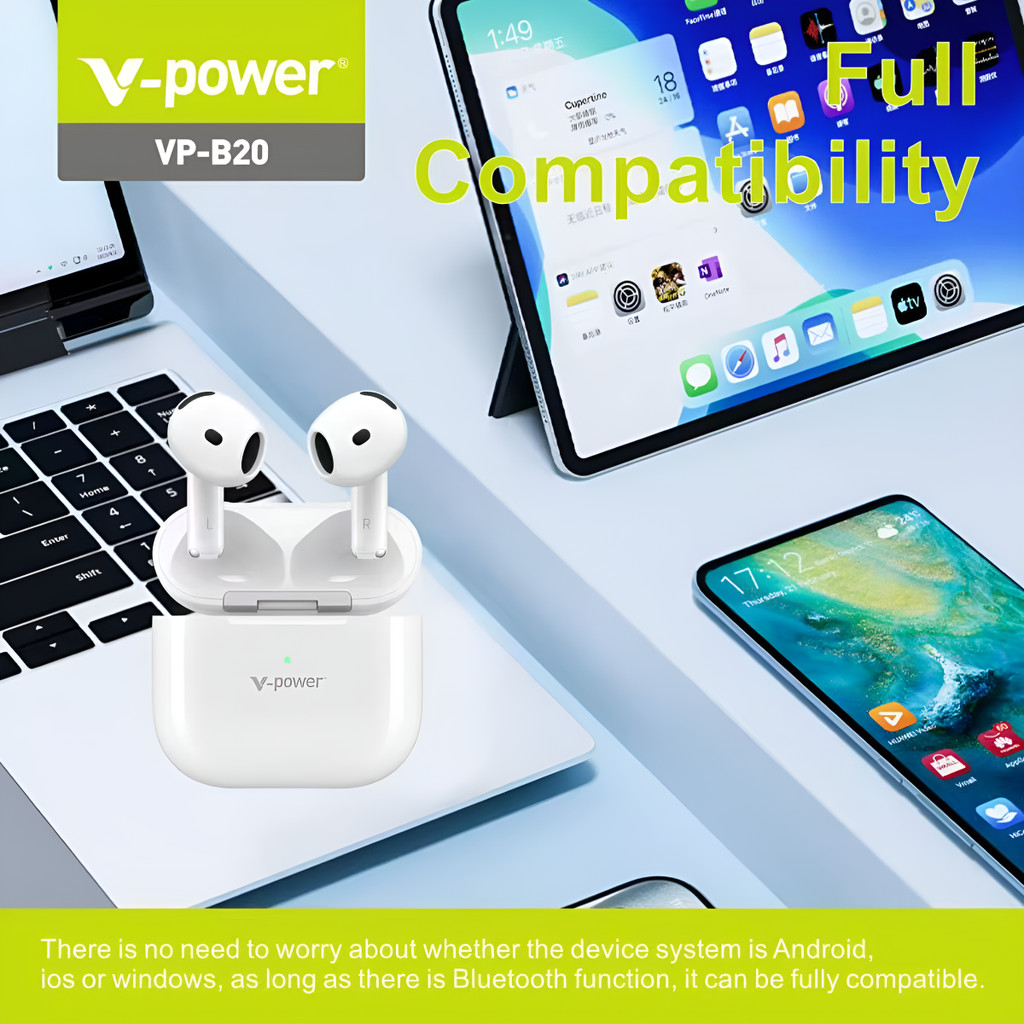 V-power VP-B20 Wireless Earphone Noise Cancellation w/ HD Sound Quality waterproof