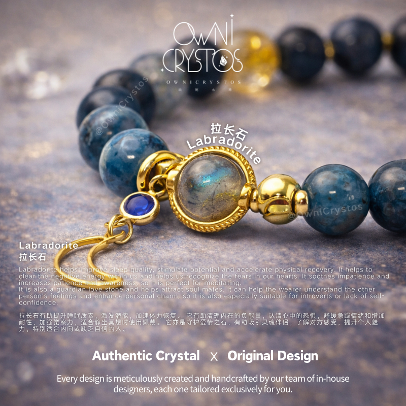 【OwniCrystos】Starry's Art | Authentic Labradorite Blue Apatite Citrine Real Natural crystal bracelet