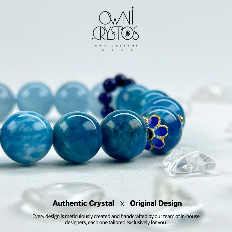 【OwniCrystos】Wisdom Courage Aquamarine Blue Apatite White Phantom Quartz Lapis Lazuli Natural charm crystal bracelet bangle