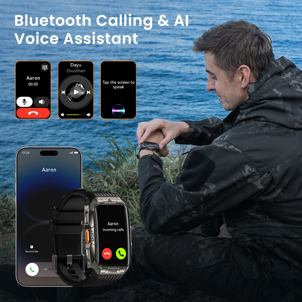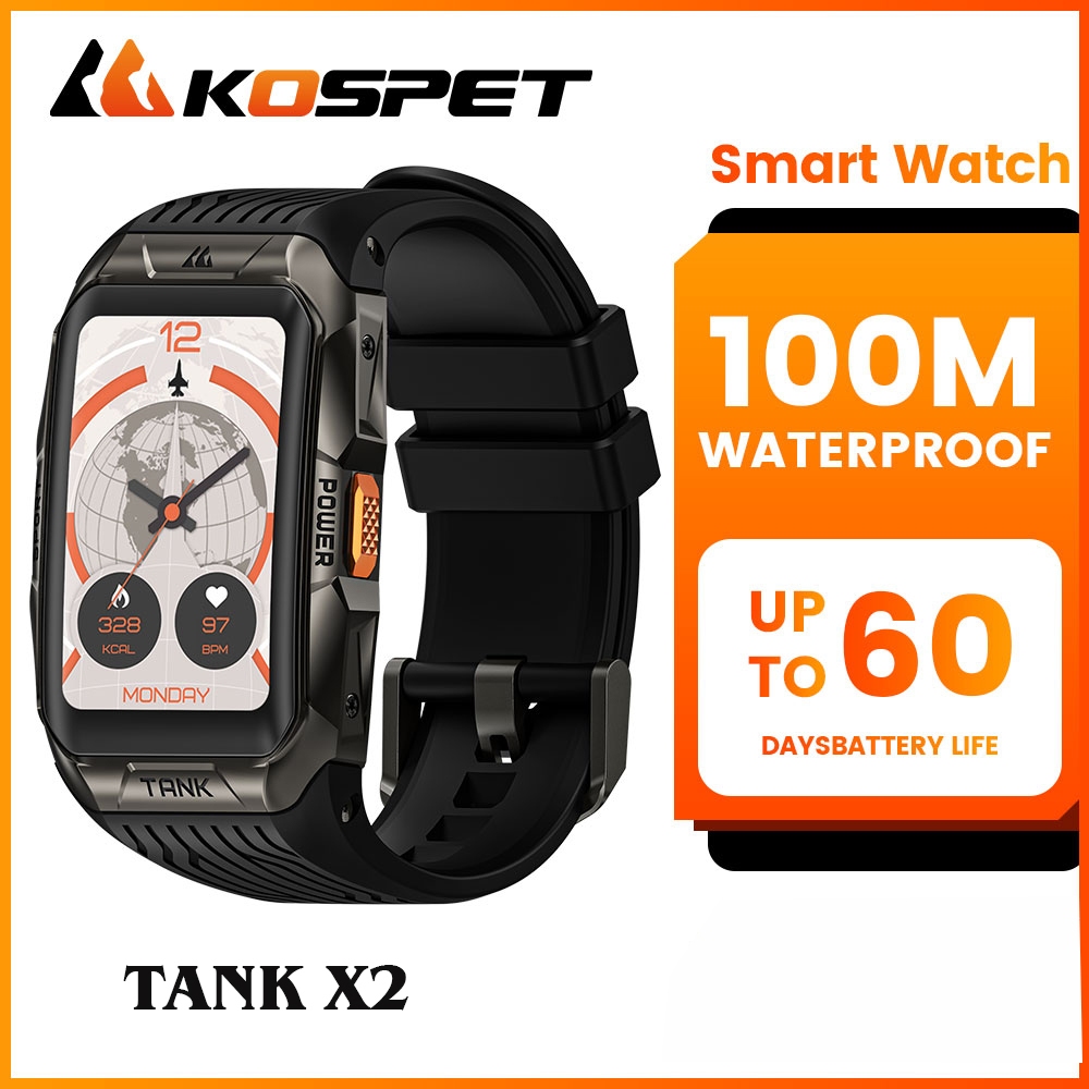 NEW KOSPET X2 Rugged Military Men's smartwatch 100M waterproof , heart rate monitor, Bluetooth call