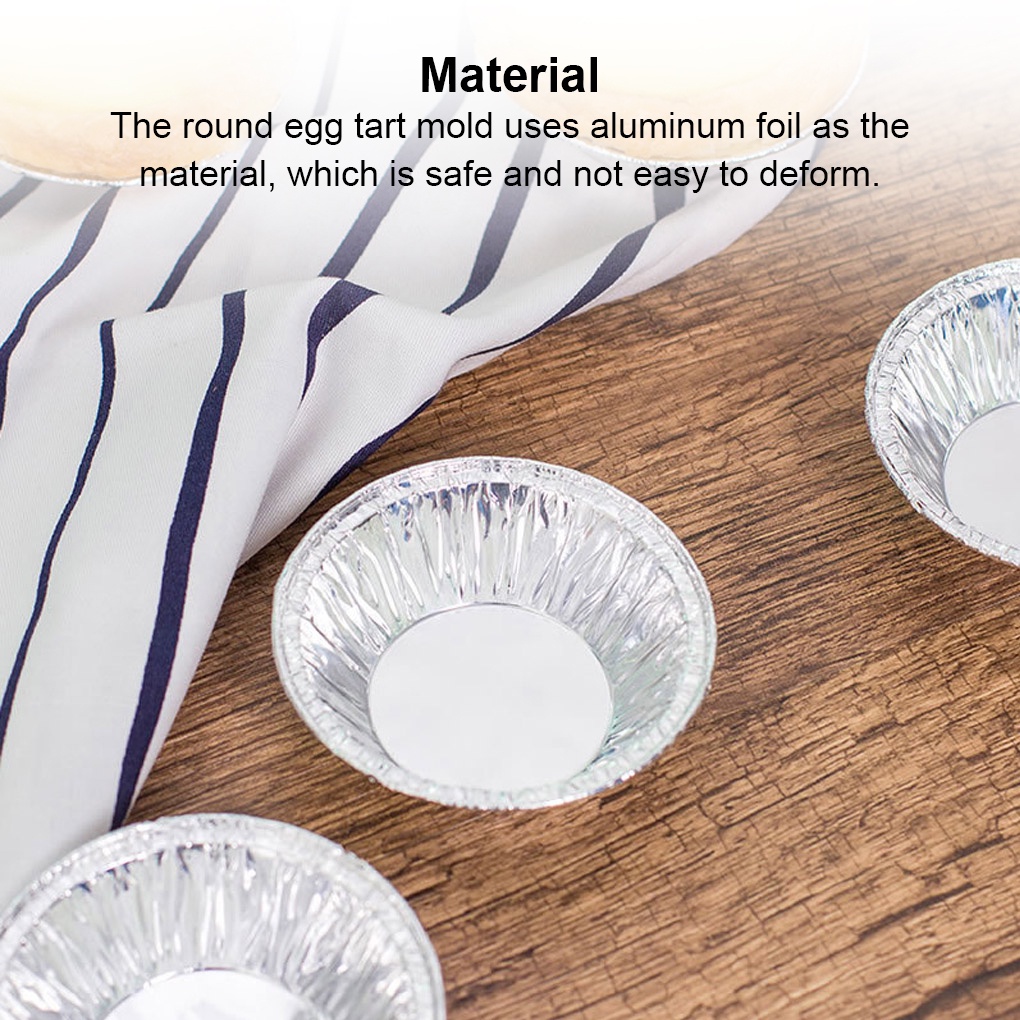 100pcs Disposable Aluminum Foil Baking Pan Round Egg Tart Mold Baking Cookie Pudding Cupcake Mould