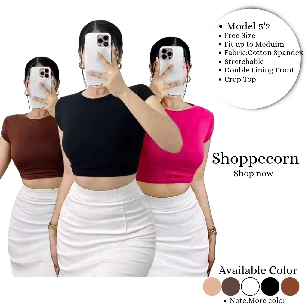 Shoppecorn | Basic Crop Top Double Lining Top for Women | XS to Medium