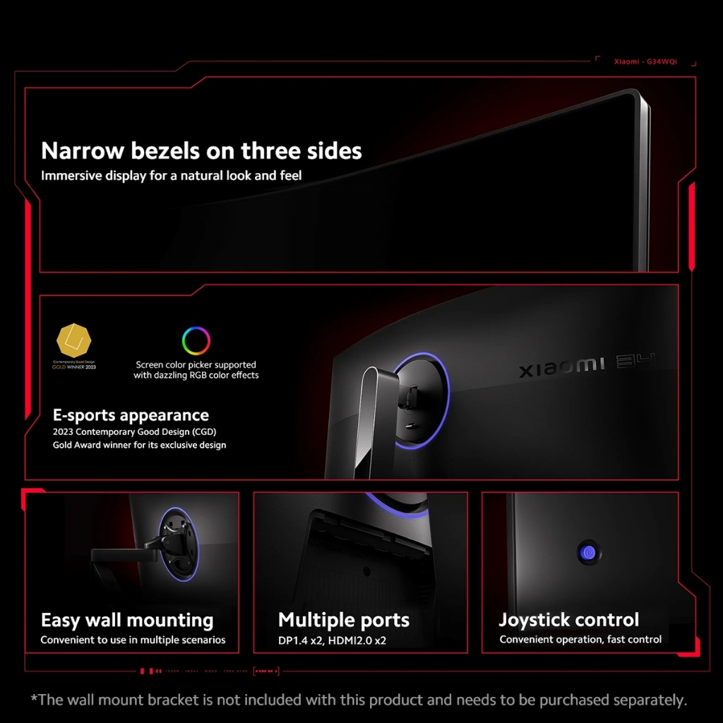 【3 Year Warranty】Xiaomi G34WQi 34 Inch Curved Gaming Monitor WQHD 180Hz Refresh Rate Low Blue Light