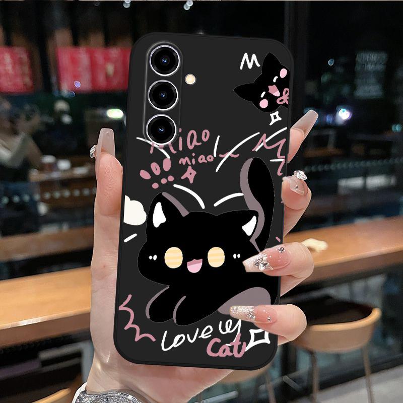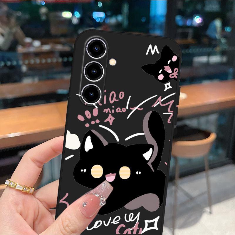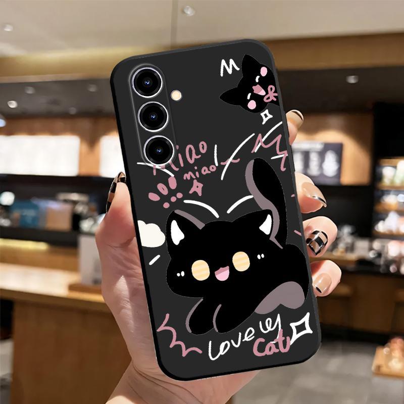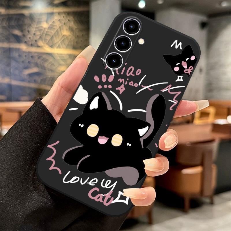 Case For ZTE Nubia V80 Max Blade V80 Max Black Cute Doodle Cat Phone Case ZTE V80 Max ZTE Blade V80 Max Nubia V80Max Soft Casing Silicone Shockproof Cover