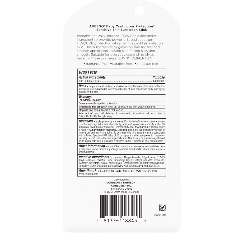 Aveeno Baby Continuous Protection Mineral Sunscreen Stick or Lotion for Sensitive Skin