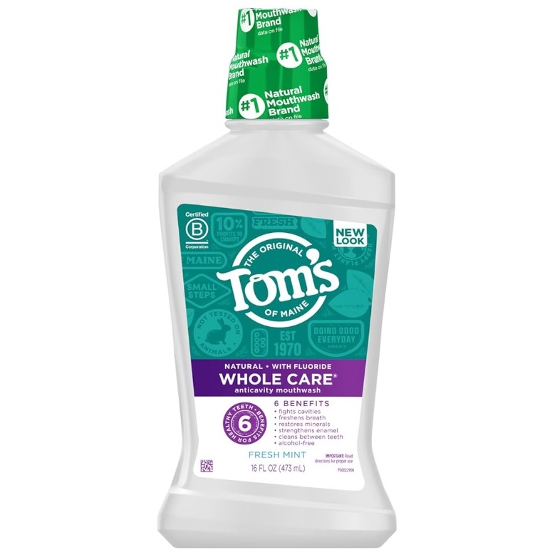 Tom's Of Maine Whole Care Natural Fluoride Mouthwash, Fresh Mint, 16 Oz