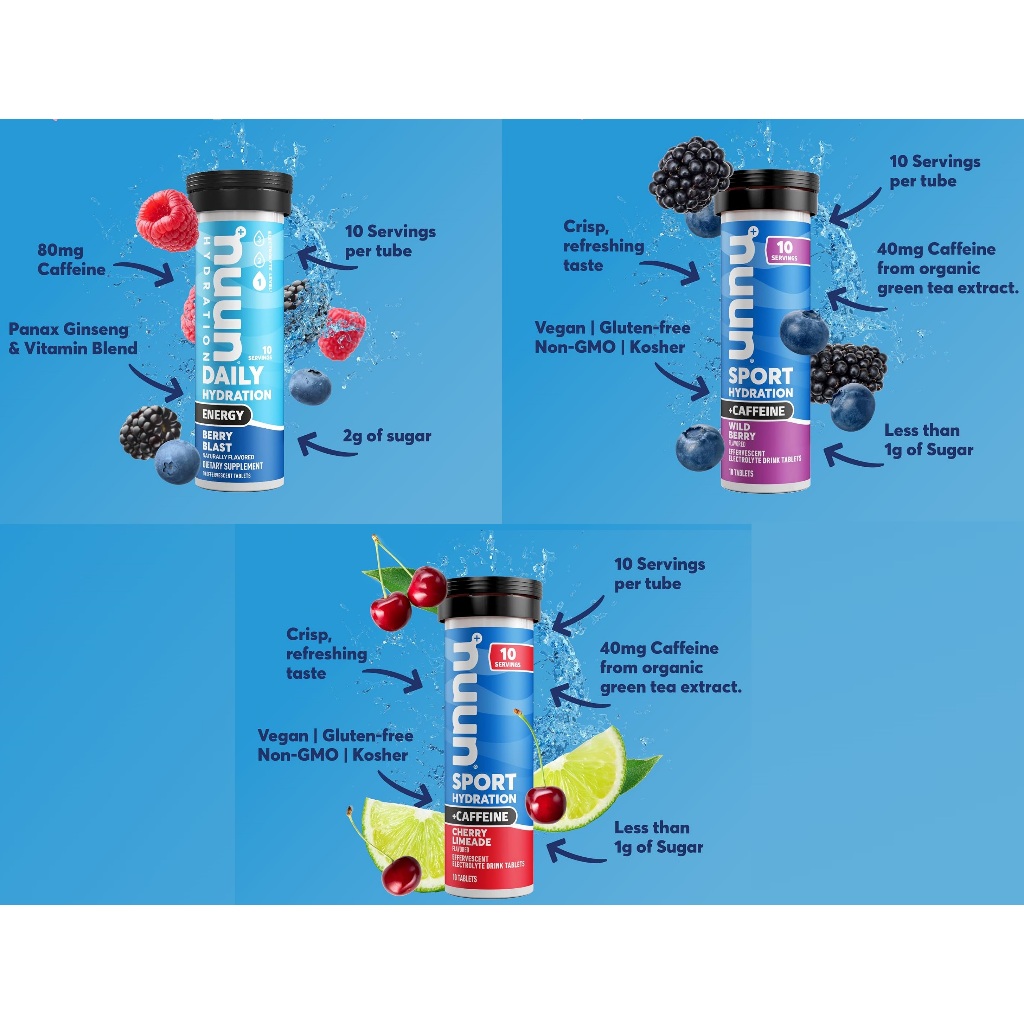 Nuun Energy Electrolyte + Caffeine Tablets 10 Tablets Cherry Limeade Berry Blast Wild Berry