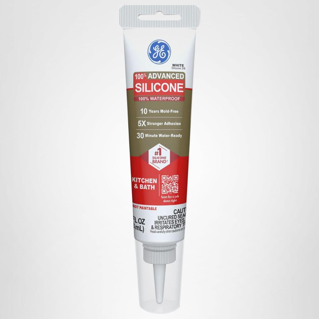 GE Advanced Silicone Caulk 2.8 oz White – Kitchen Bathroom Waterproof Sealant Strong Adhesion