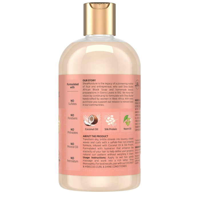 SheaMoisture Curl & Shine Coconut Shampoo – Coconut & Hibiscus for Curly Hair, 13 oz